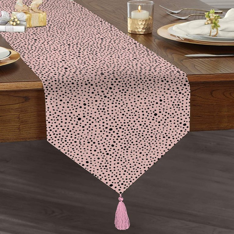 Realhomes Renkli Zemin Üzerinde Siyah Puantiye Desenli Dijital Baskılı Özel Tasarım Püsküllü Şönil Üçgen Runner
