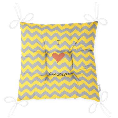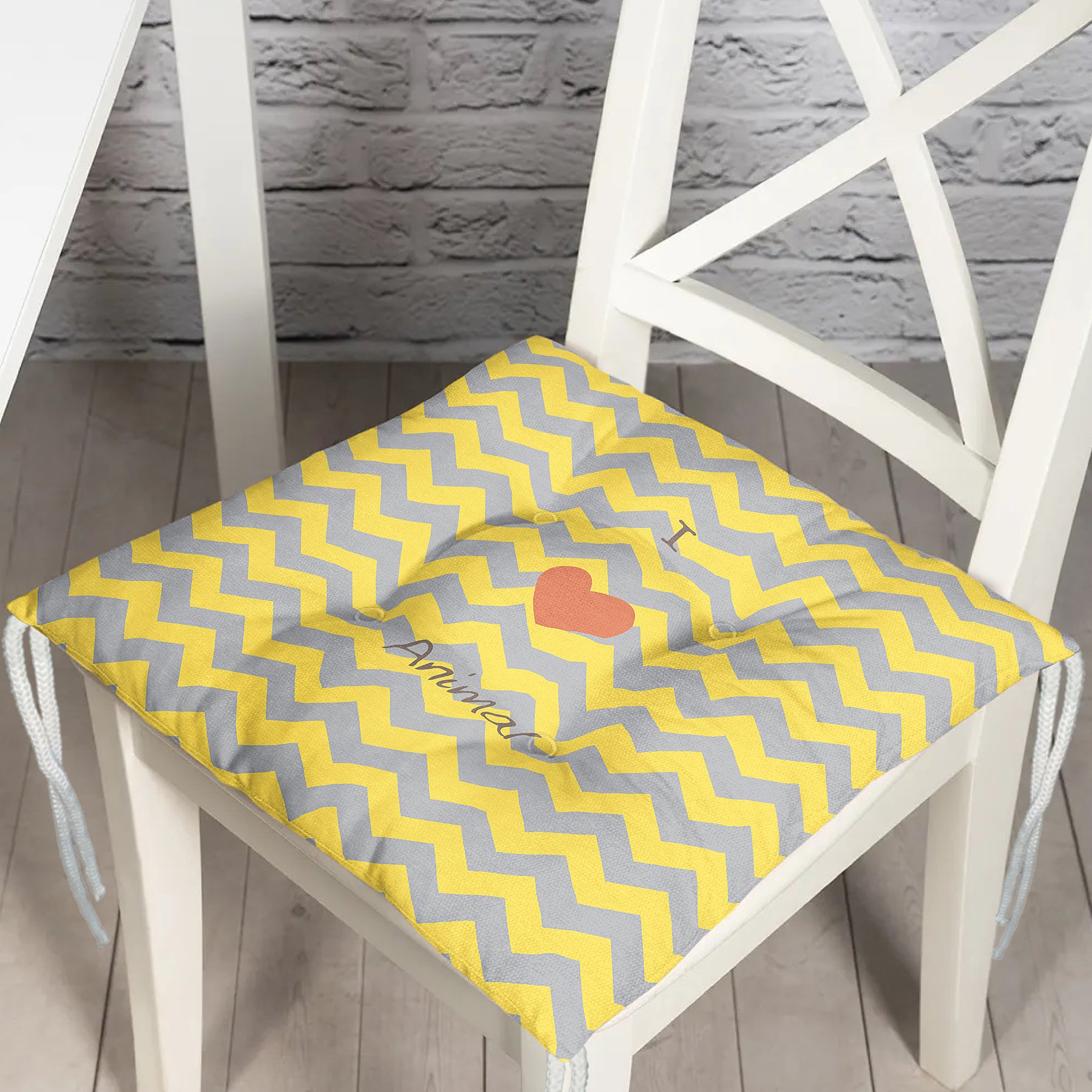 Realhomes Sarı Gri Zikzaklı I Love Animal Desenli Modern Pofidik Sandalye Minderi