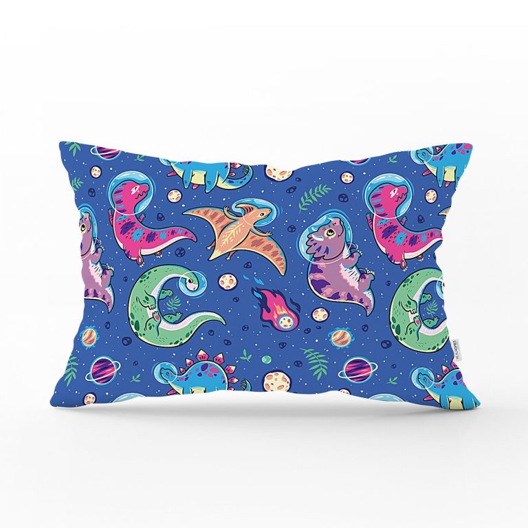 Realhomes Sevimli Dinazorlar Dijital Baskılı Modern Dikdörtgen Yastık Kılıfı