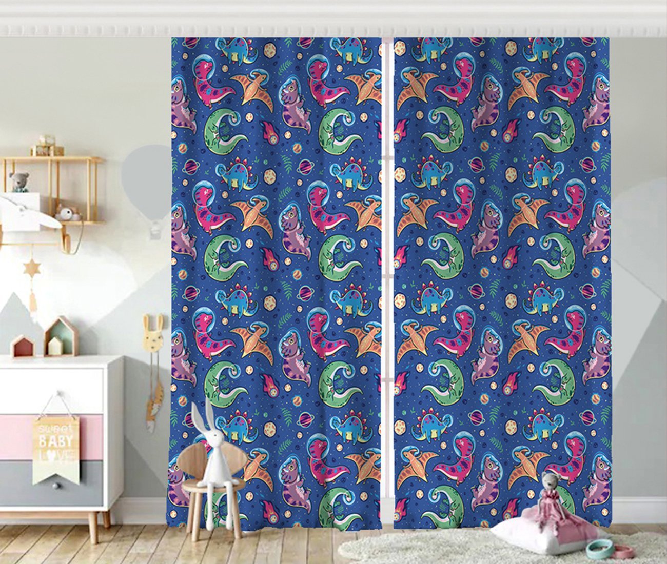 Realhomes Sevimli Dinazorlar Dijital Baskılı Modern Fon Perde