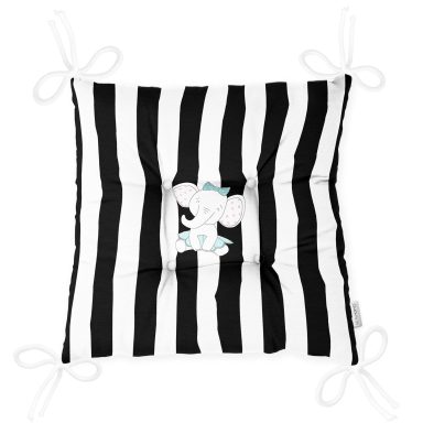 Realhomes Siyah Beyaz Çizgili Fil Motifli Modern Pofidik Sandalye Minderi