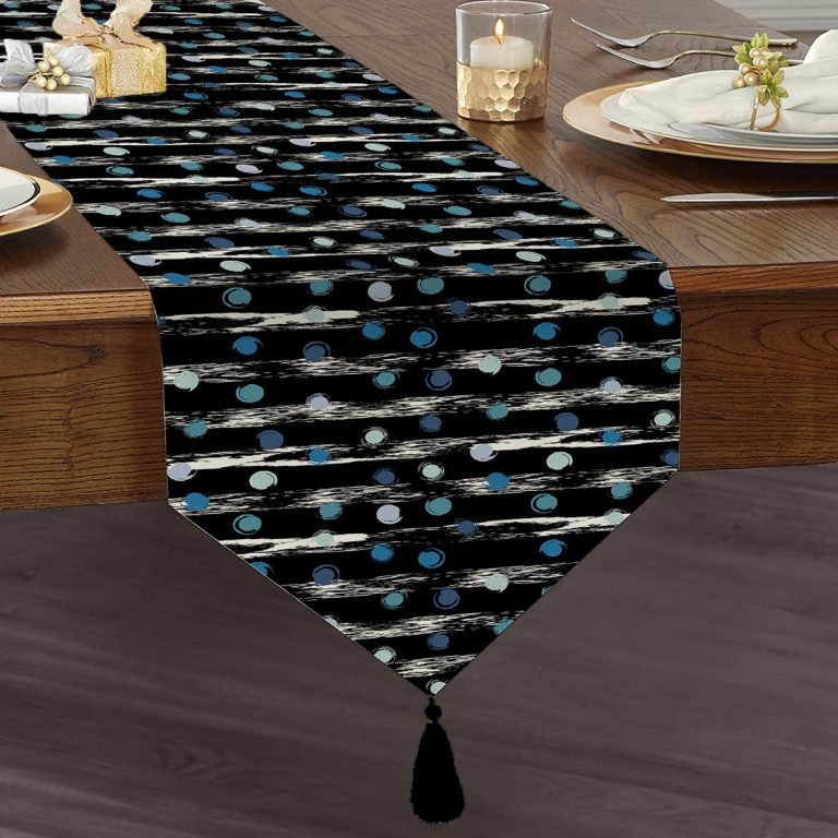 Realhomes Siyah Zemin Üzerinde Renkli Puantiyeli Dijital Baskılı Özel Tasarım Püsküllü Şönil Üçgen Runner
