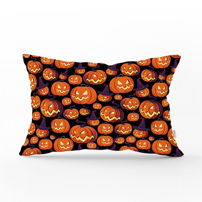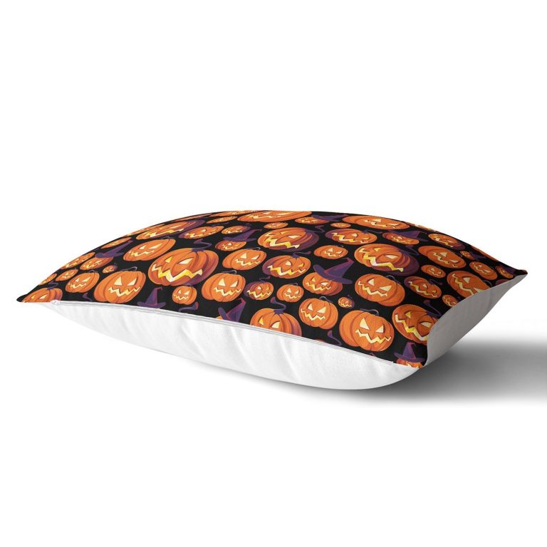 Realhomes Siyah Zeminde Balkabağı Dijital Baskılı Modern Dikdörtgen Kırlent Kılıfı