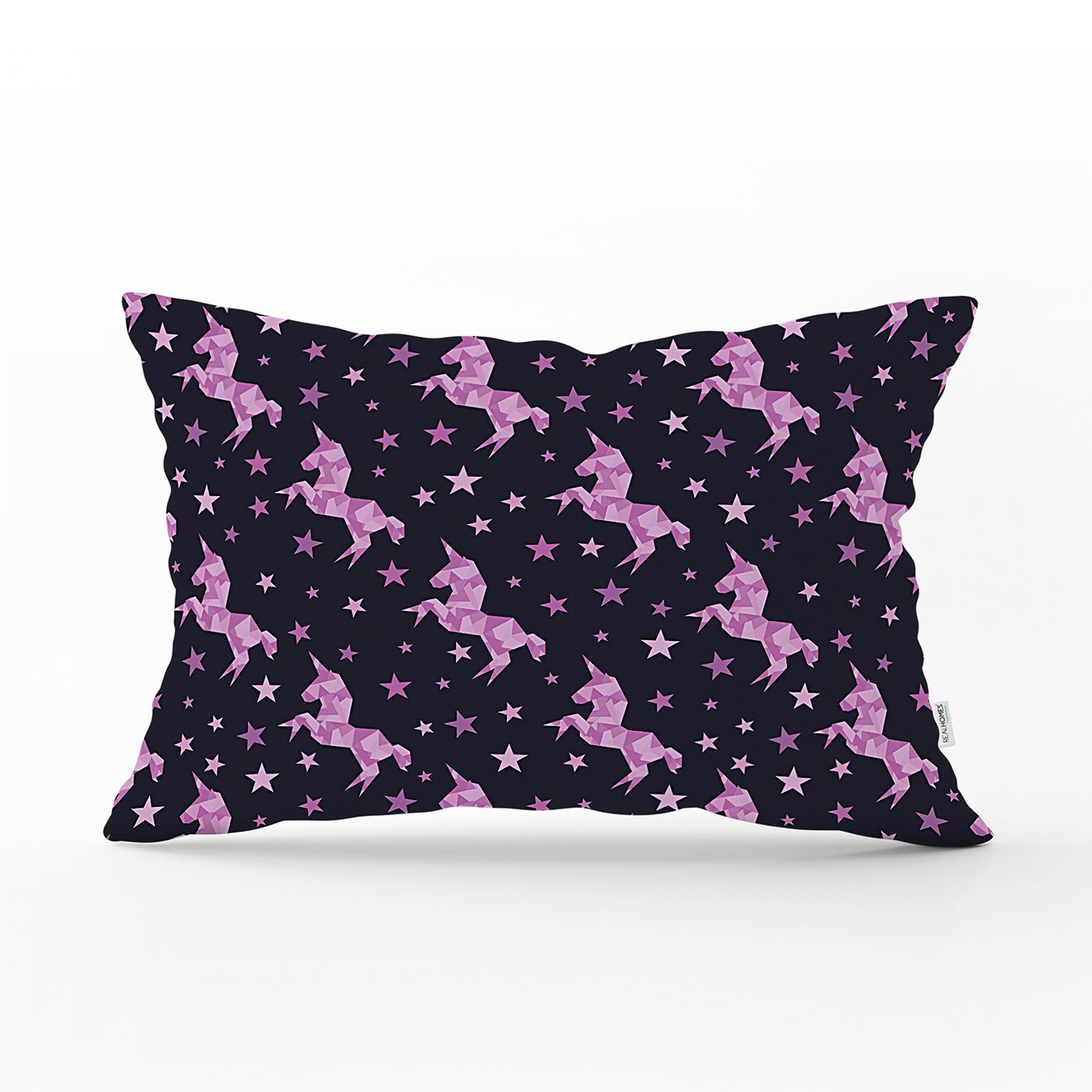 Realhomes Siyah Zeminde Pembe Yıldız Dijital Baskılı Modern Dikdörtgen Yastık Kılıfı