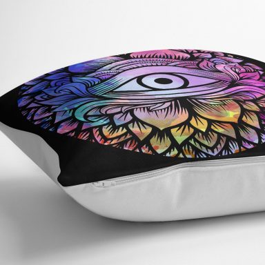 RealHomes Siyah Zeminde Renkli Üçüncü Göz Motifli Yer Minderi