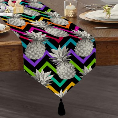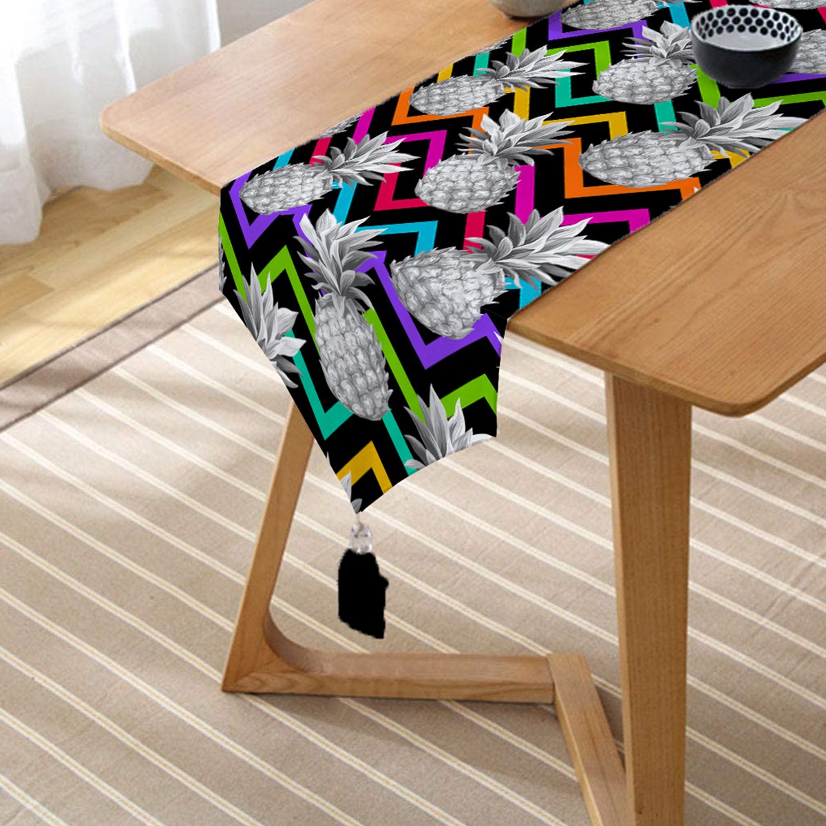 Realhomes Siyah Zigzag Temalı Ananas Desenli Modern Özel Tasarım Püsküllü Şönil Üçgen Runner