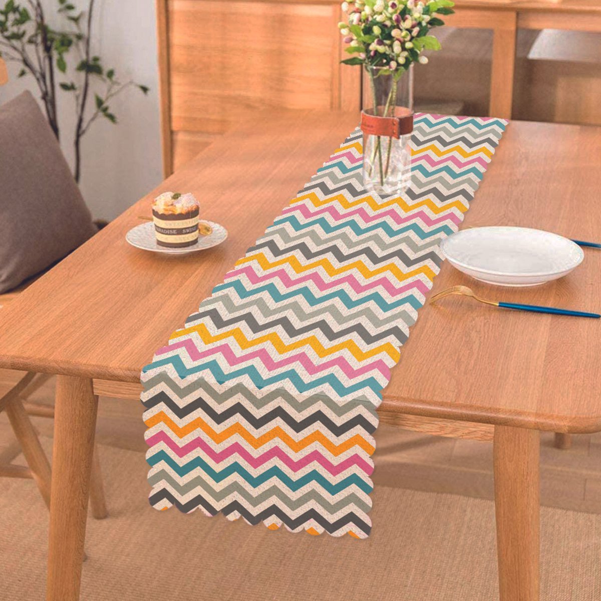 RealHomes Zigzag Desenli Dijital Baskılı 3D Özel Tasarım Runner