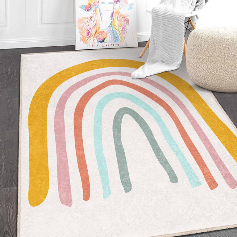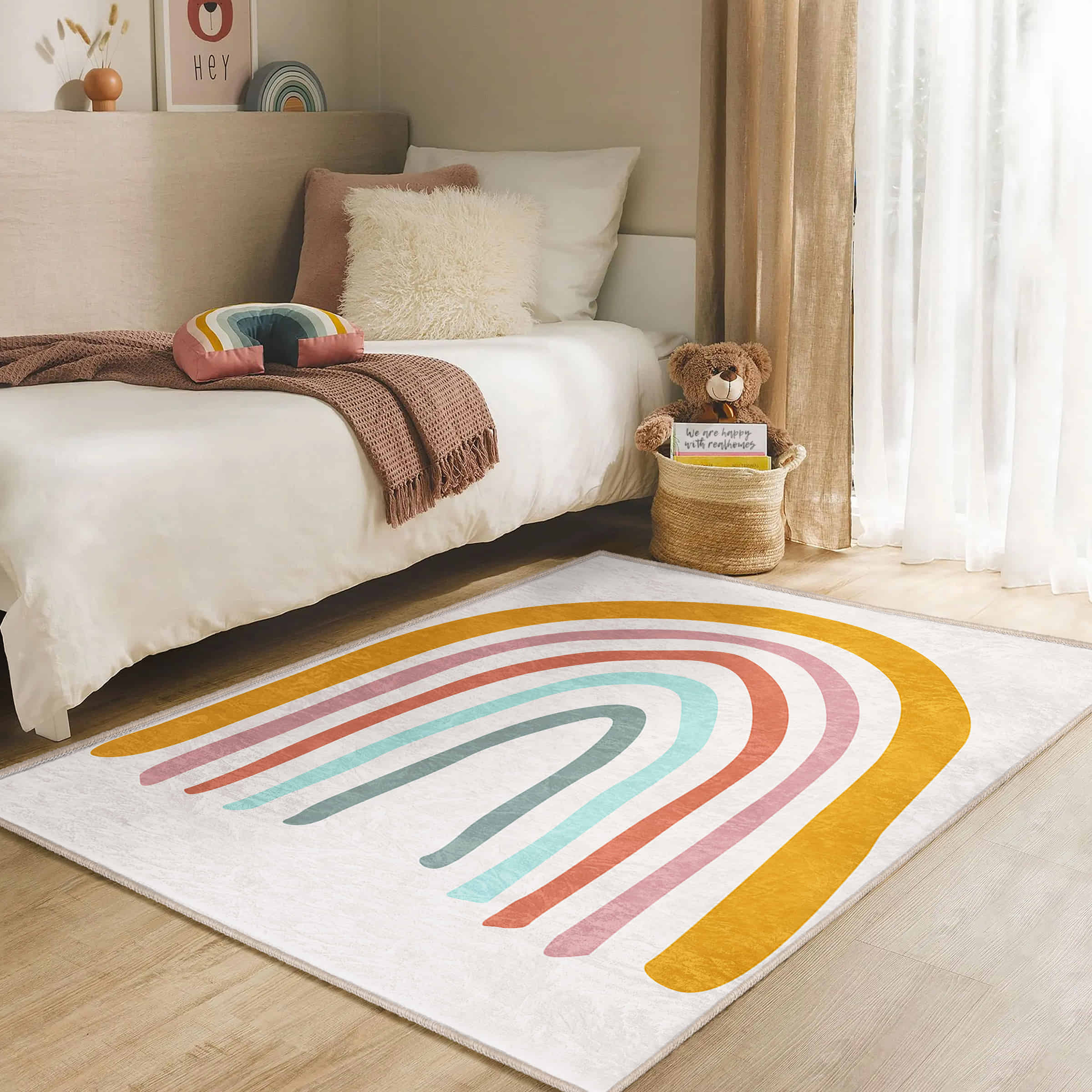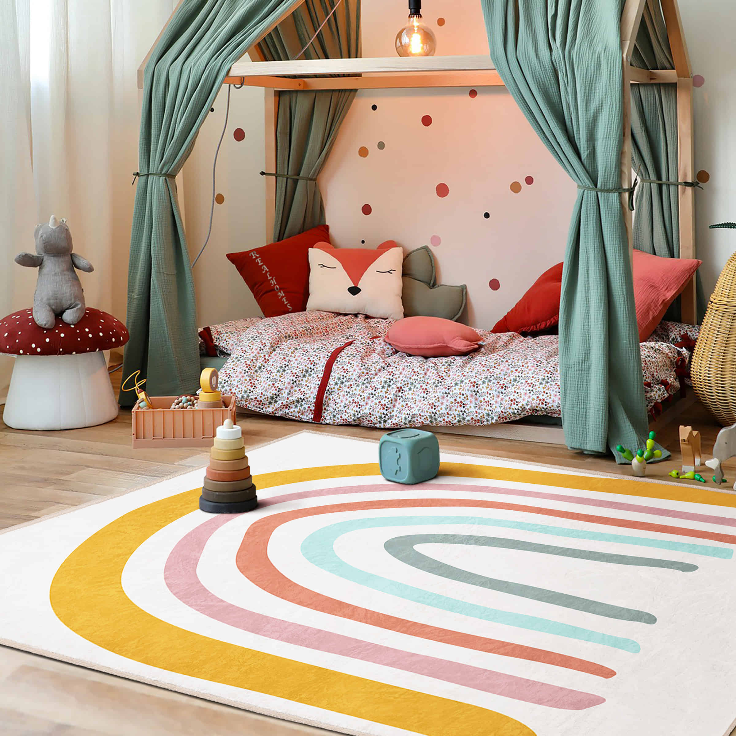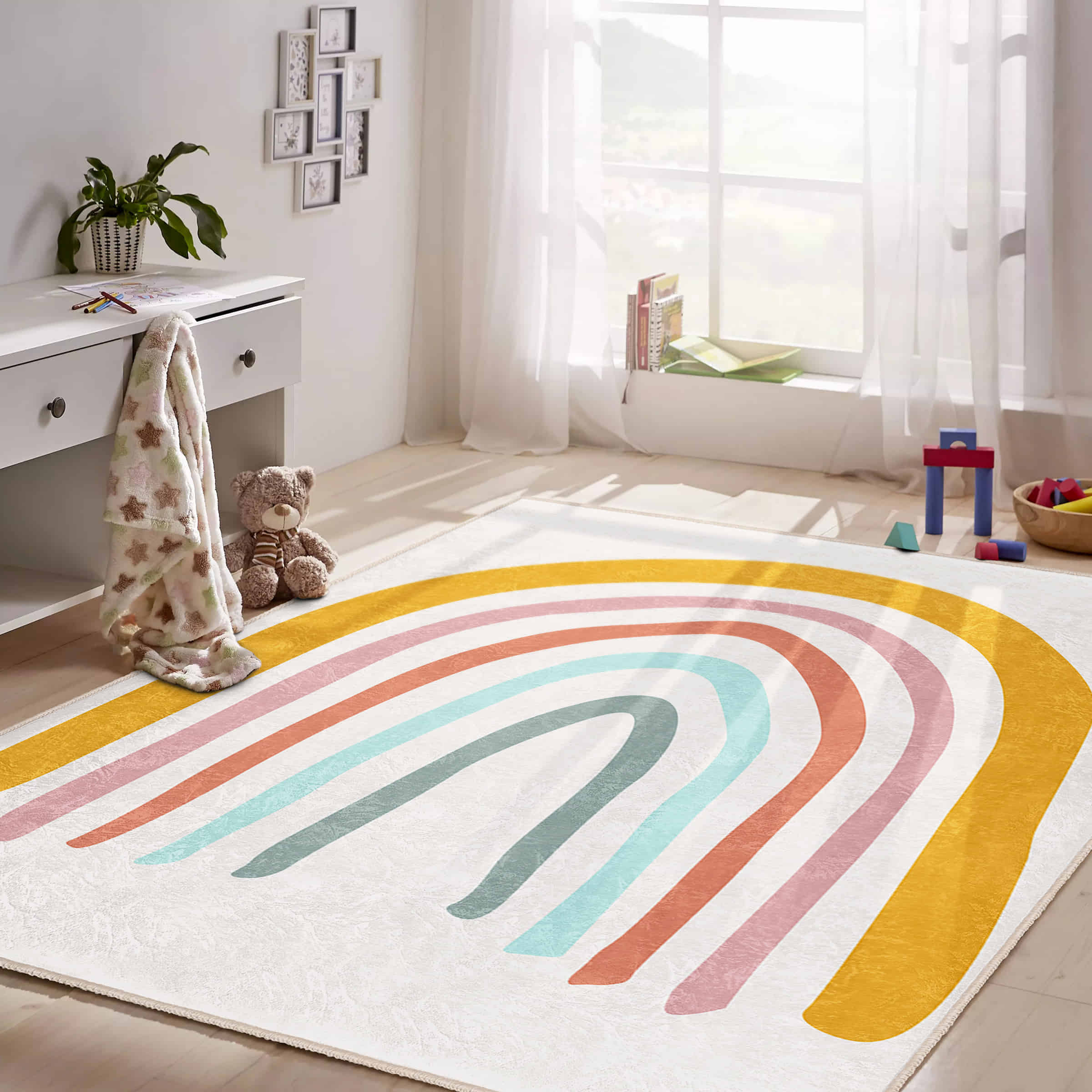 Rengarenk Halka Desenli Rahat ve Eğlenceli Kaymaz Tabanlı Çocuk Halısı | Makinede Yıkanabilir