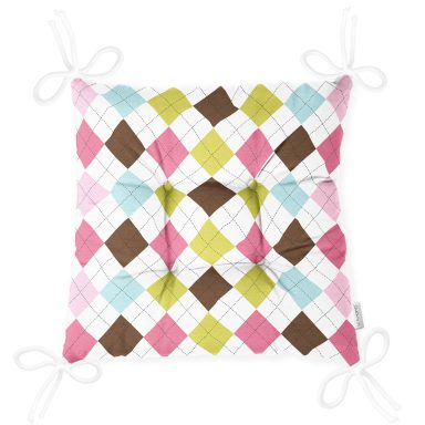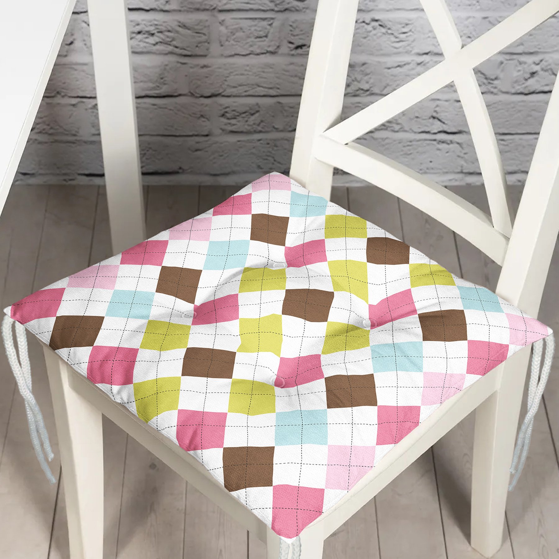 Rengarenk Kareli Motifli Dijital Baskılı Modern Pofidik Sandalye Minderi