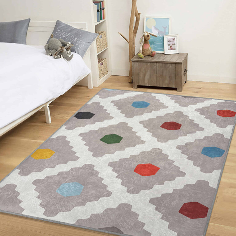 Renkli Altıgen Desenli Yıkanabilir Kaymaz Taban Çocuk Halısı – Dikdörtgen & Modern