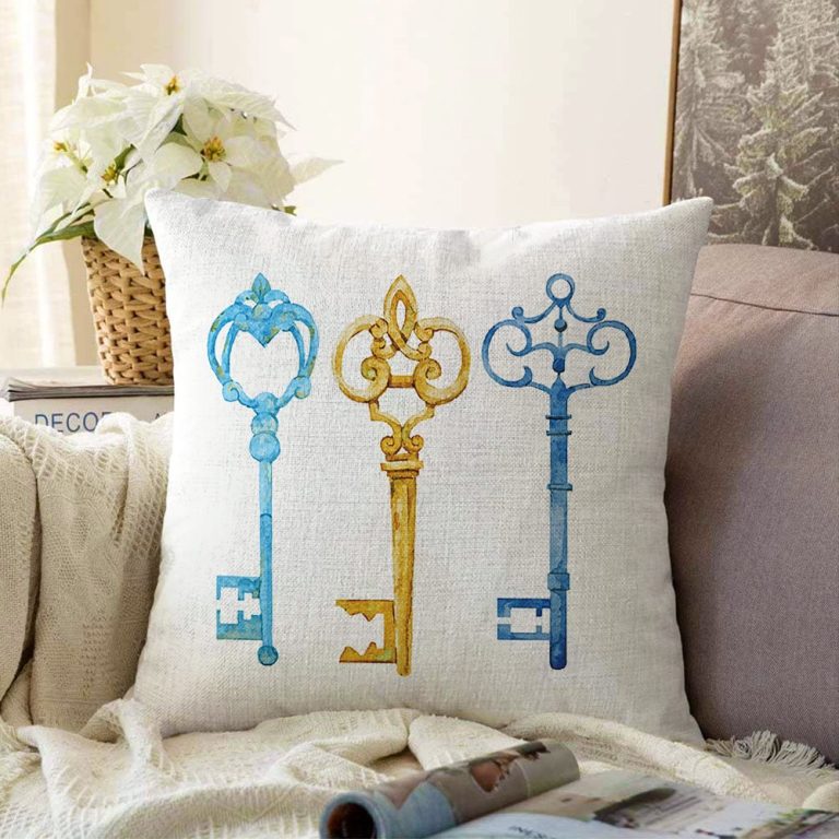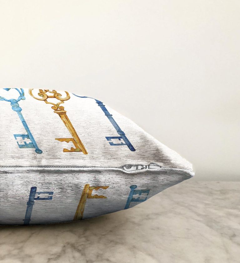 Renkli Anahtar Desenli Dijital Baskılı Raşel Yastık Kırlent Kılıfı