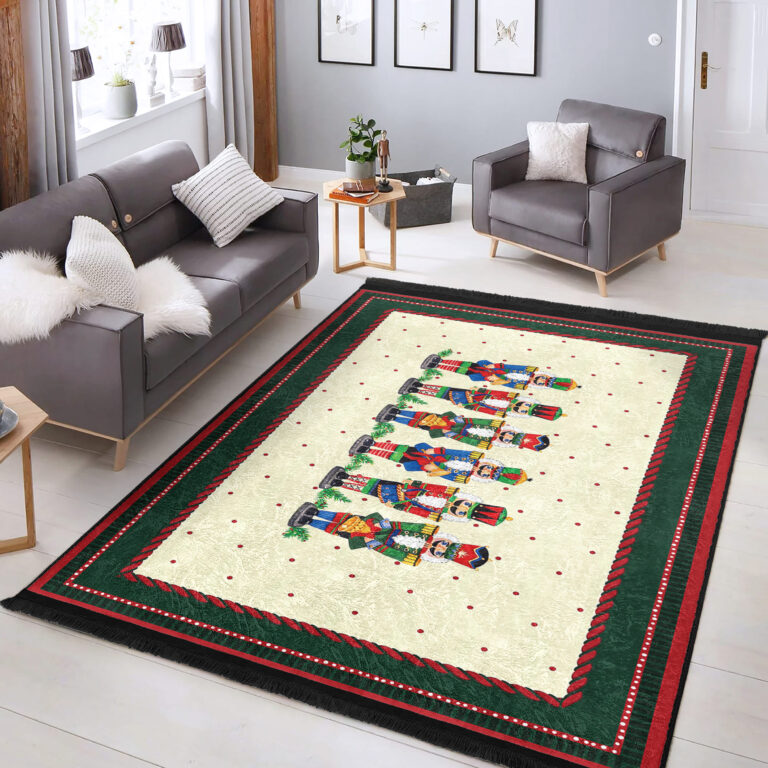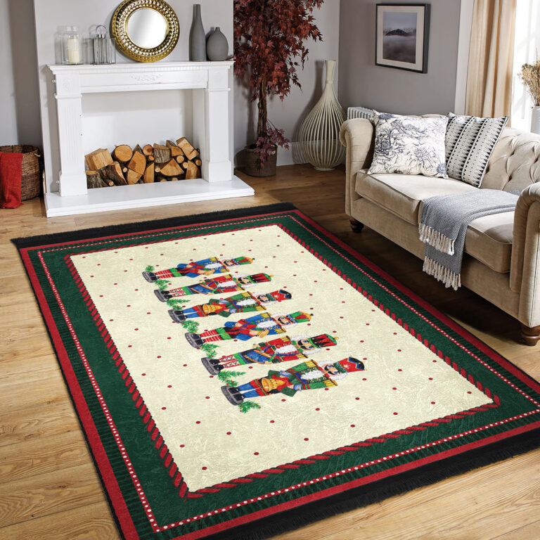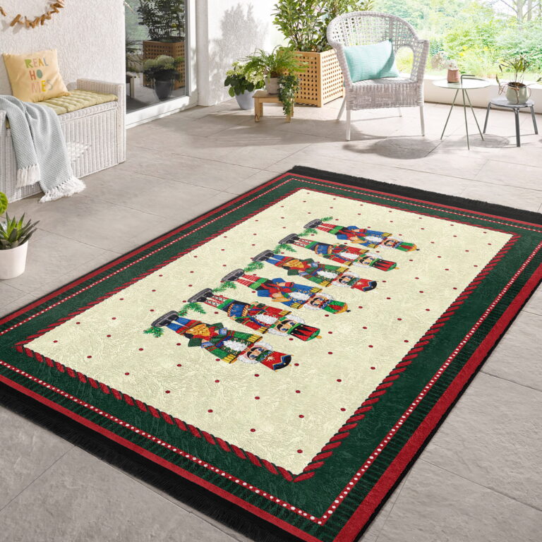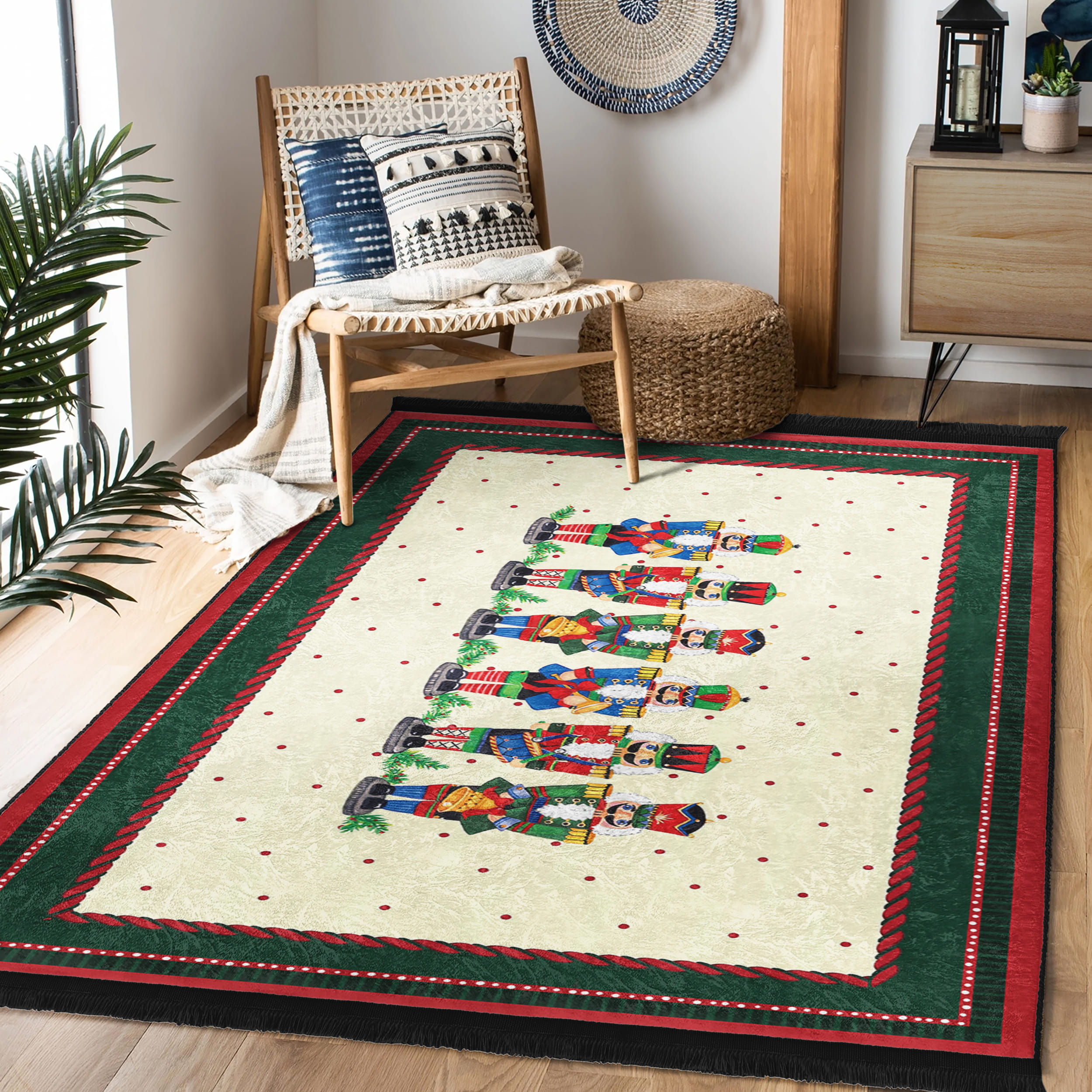 Renkli Asker Figürlü Vintage Desenli Salon Halısı – Makinede Yıkanabilir Kaymaz Tabanlı