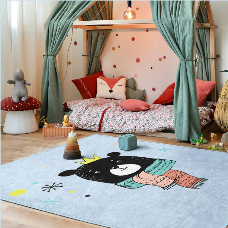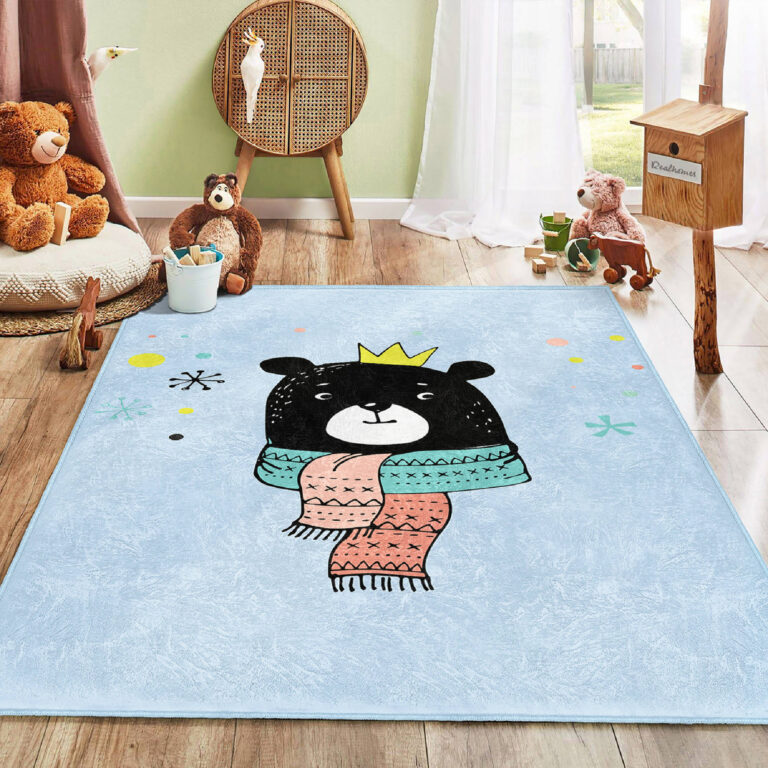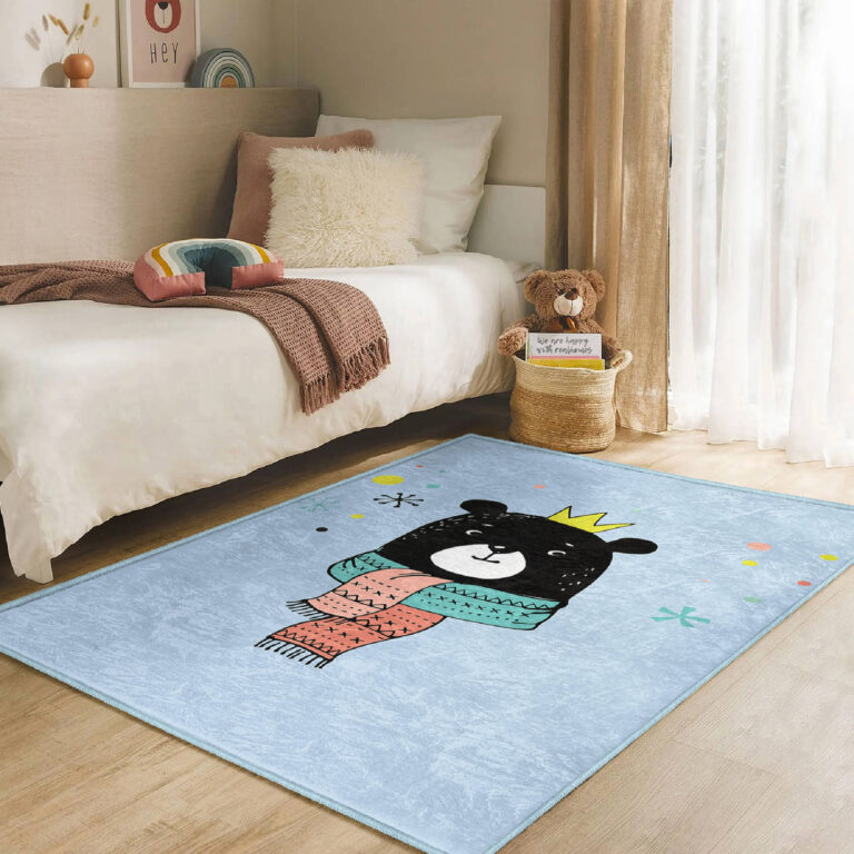Renkli Ayı Desenli Çocuk Odası İçin Yıkanabilir Kaymaz Taban Halı