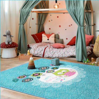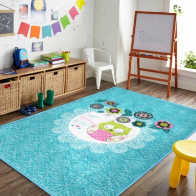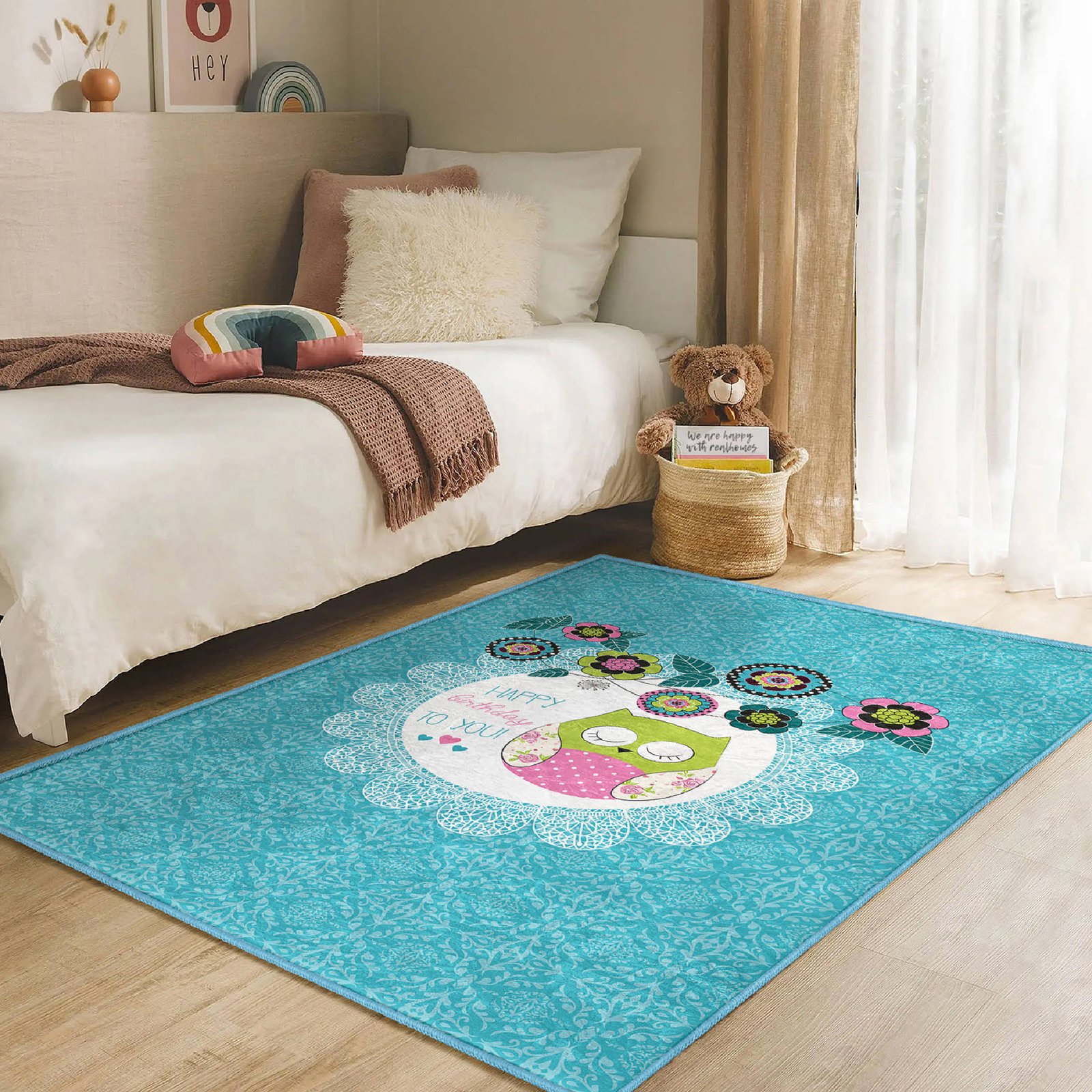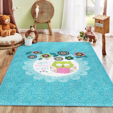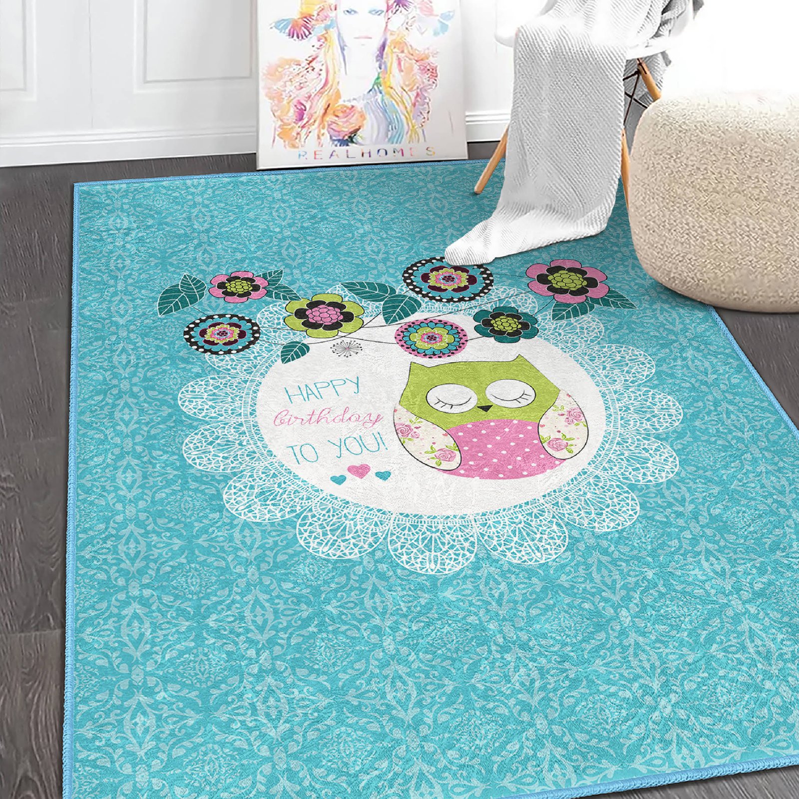 Renkli Baykuş Motifli Çocuk Halısı – Yıkanabilir Kaymaz Taban ile Eğlenceli Oda Dekorasyonu