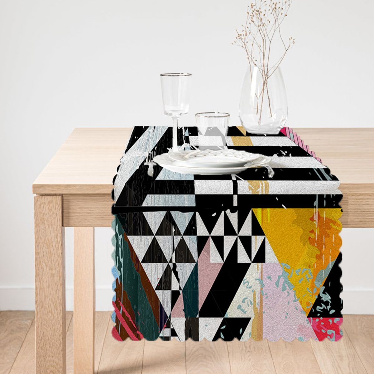 Renkli Boyama Desenli Dijital Baskılı Özel Tasarım Runner