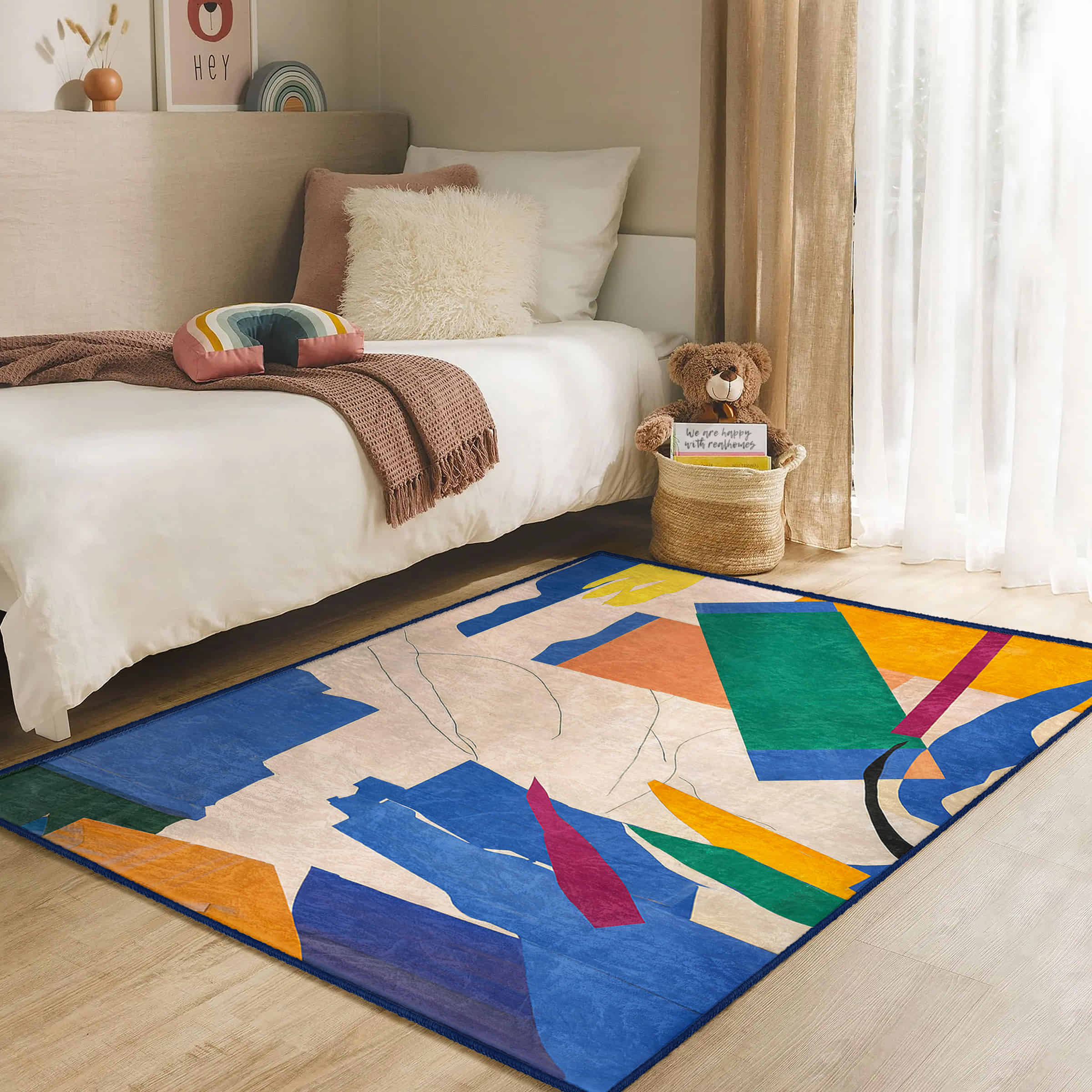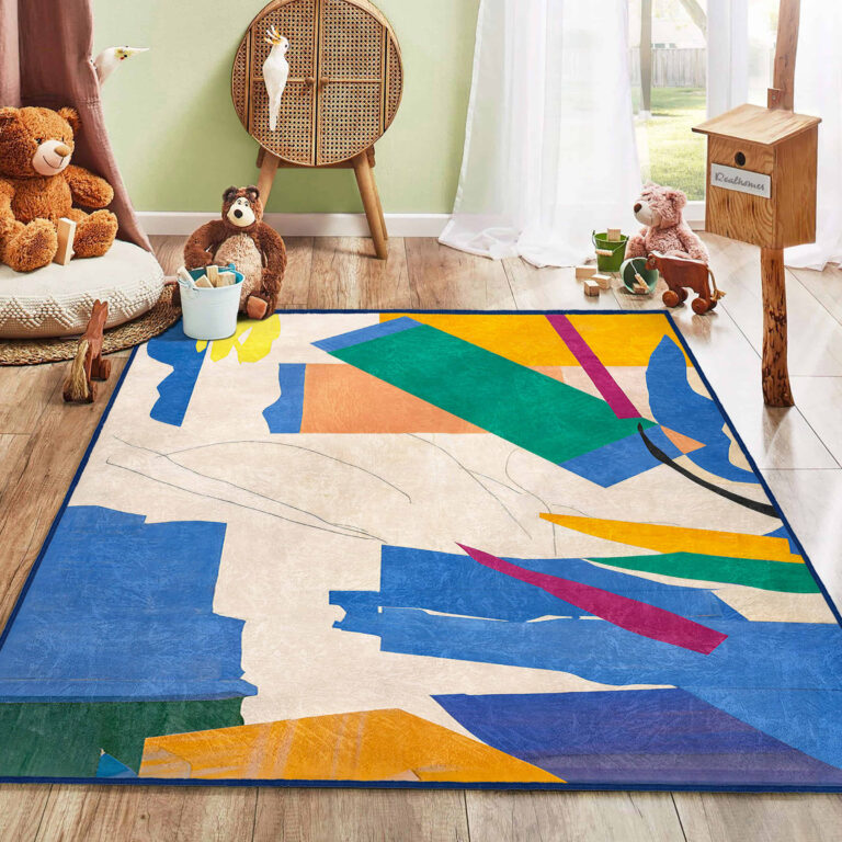 Renkli Geometrik Desenli Çocuk Halısı – Yıkanabilir Kaymaz Tabanlı Dikdörtgen Çocuk Halısı