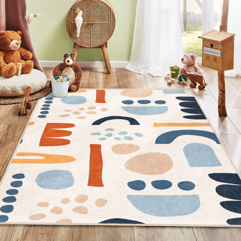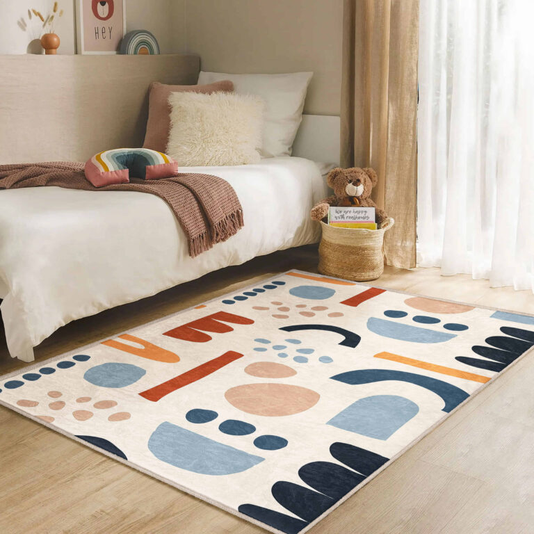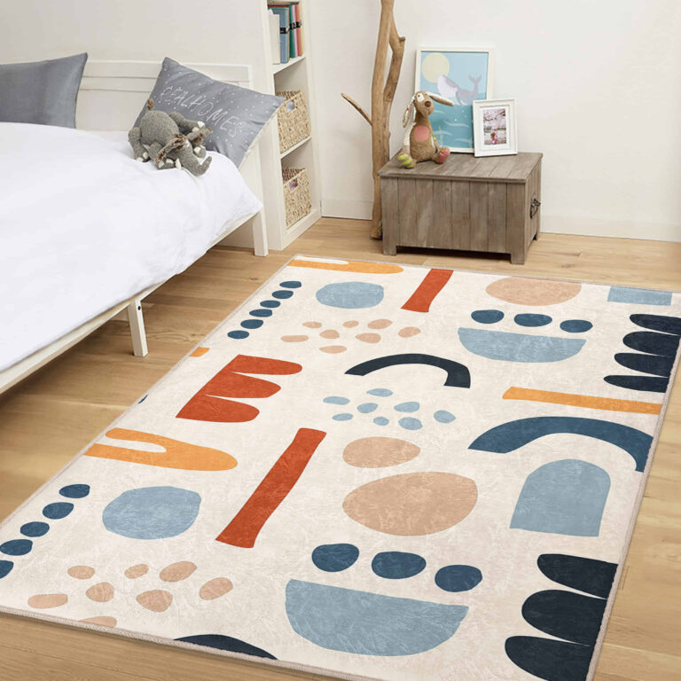 Renkli Geometrik Desenli Makinede Yıkanabilir Kaymaz Taban Çocuk Halısı