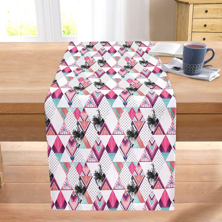 Renkli Geometrik Üçgen Motifli Dekoratif Dikişli Şönil Runner