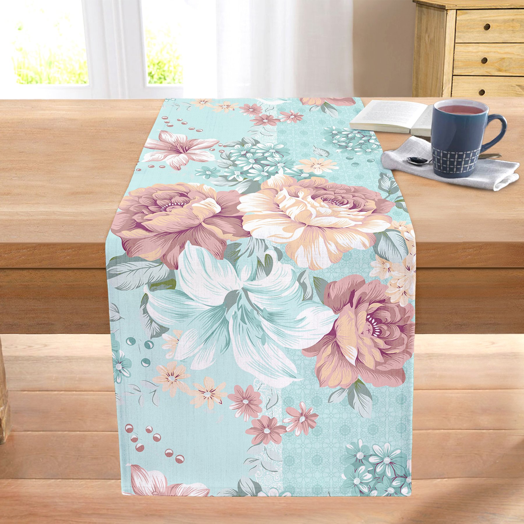 Renkli Gül Motifli Dijital Baskılı Dekoratif Dikişli Şönil Runner