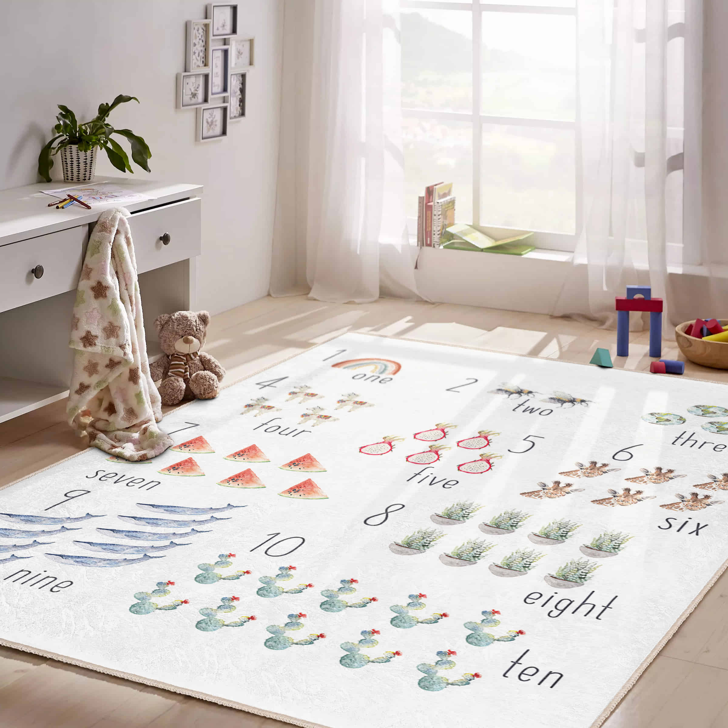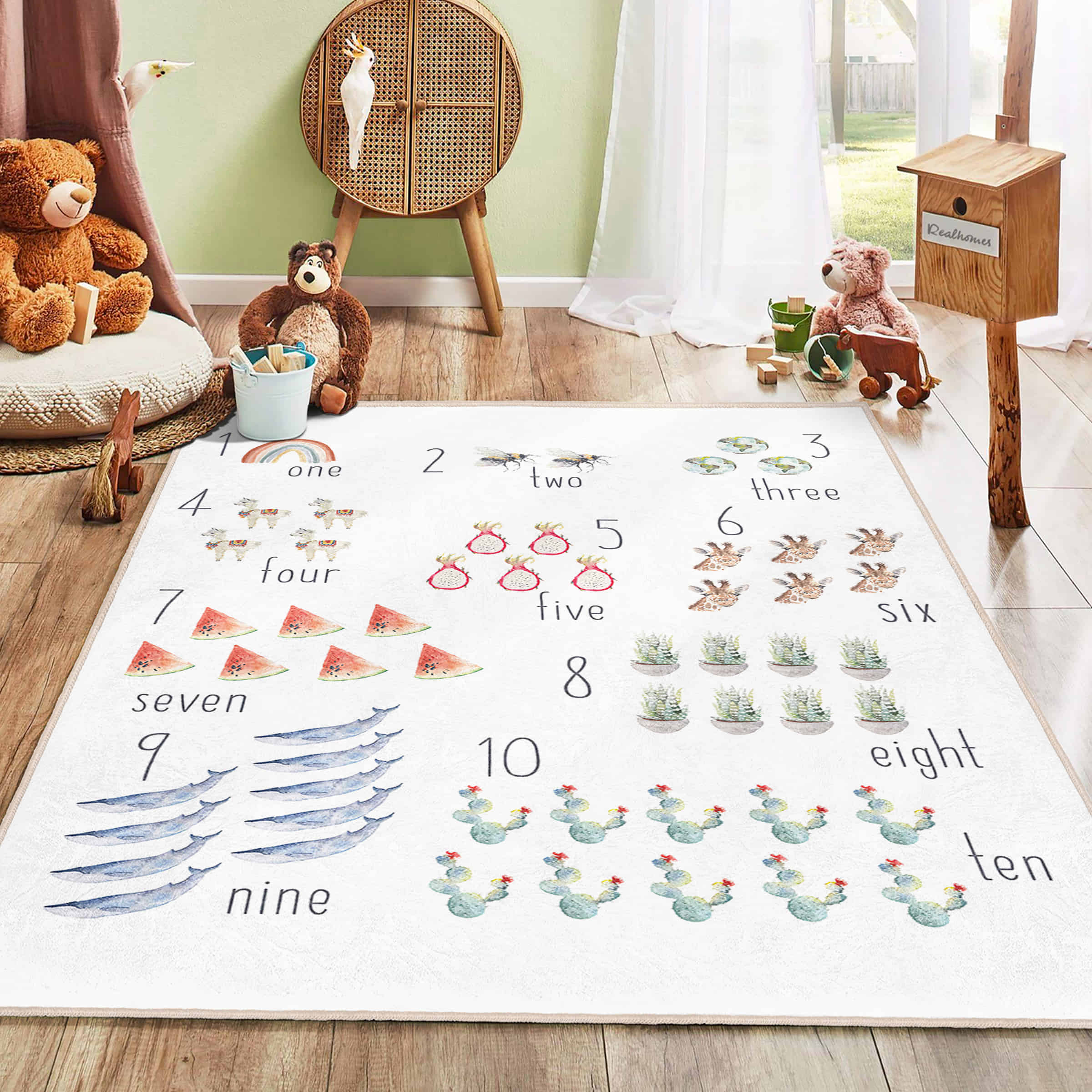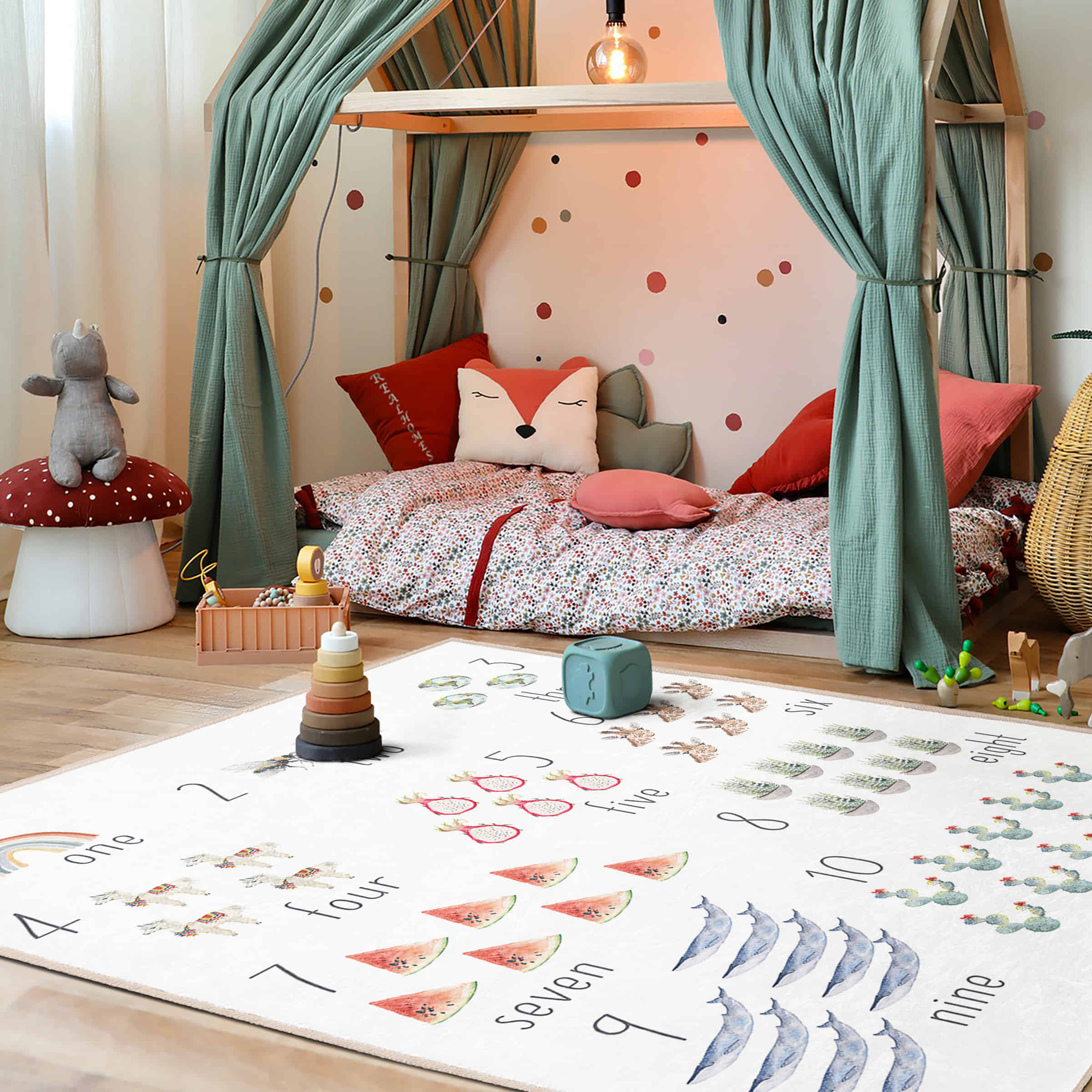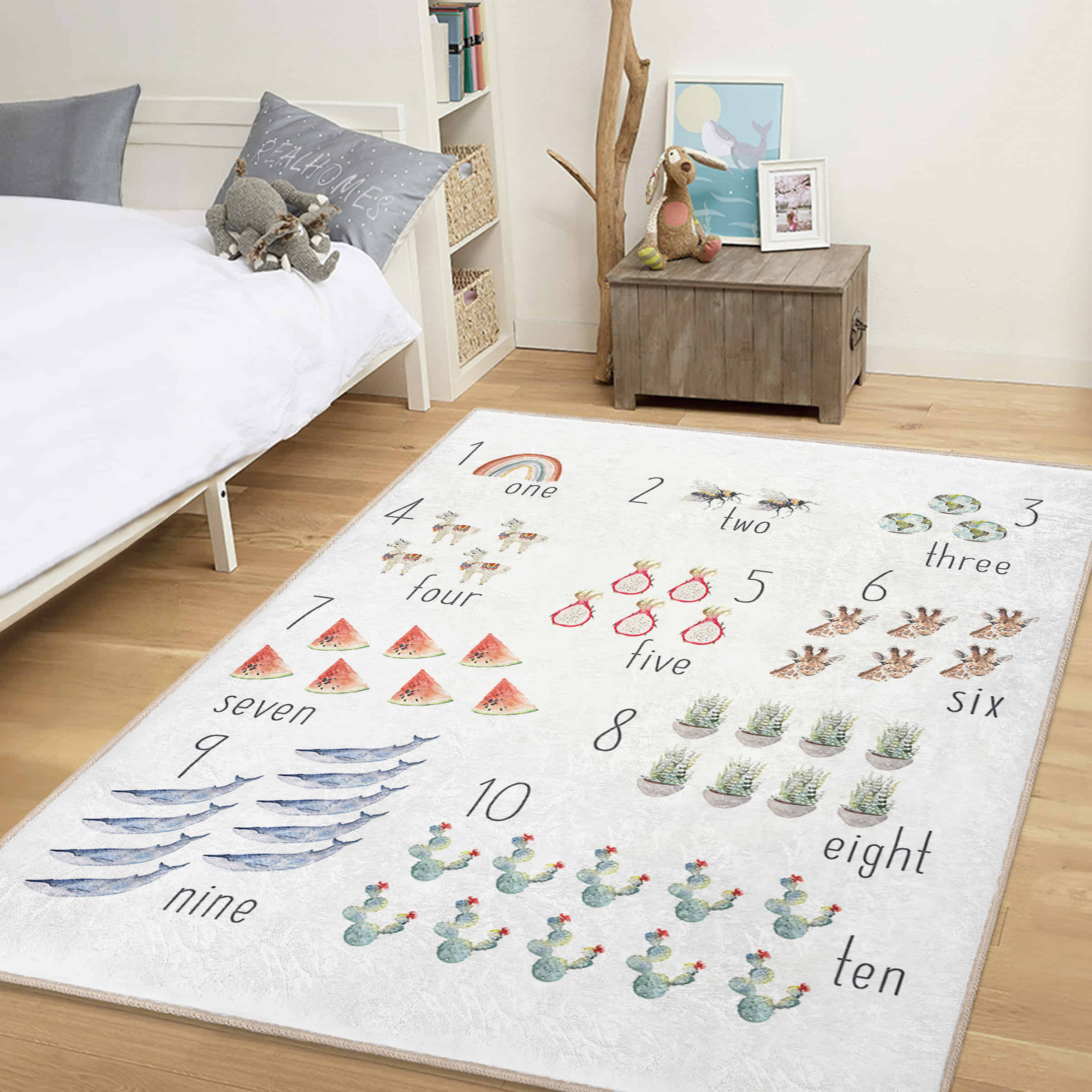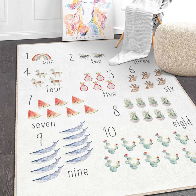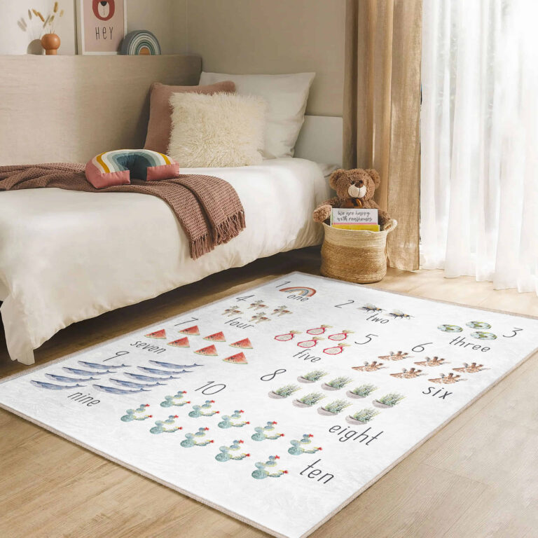 Renkli Hayvan Motifli Yıkanabilir Kaymaz Tabanlı Çocuk Halısı – Dikdörtgen Eğlenceli Tasarım