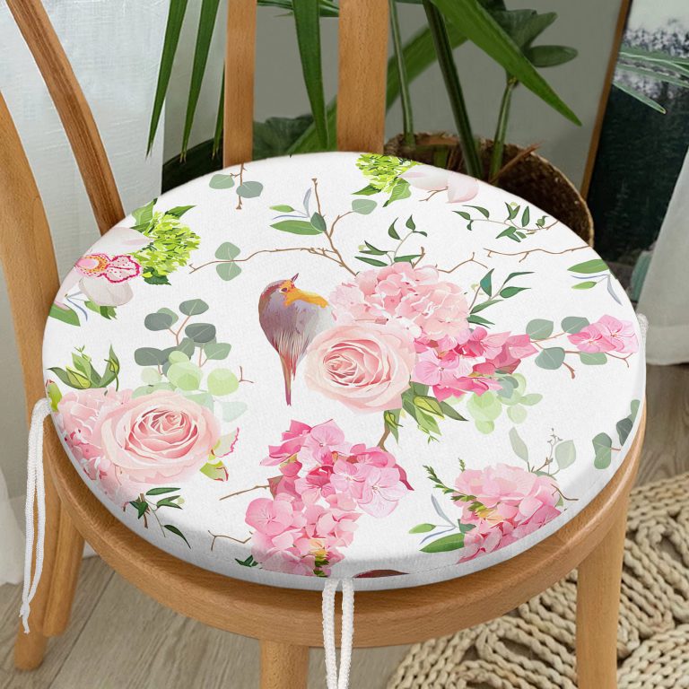 Renkli Kuş Motifli Dijital Baskılı Yuvarlak Fermuarlı Sandalye Minderi