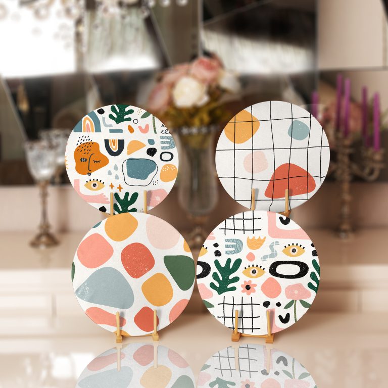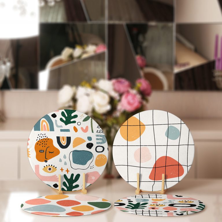 Renkli Onedraw Dijital Baskılı Bohem Tasarımlı Yuvarlak Servis Altlığı & Supla