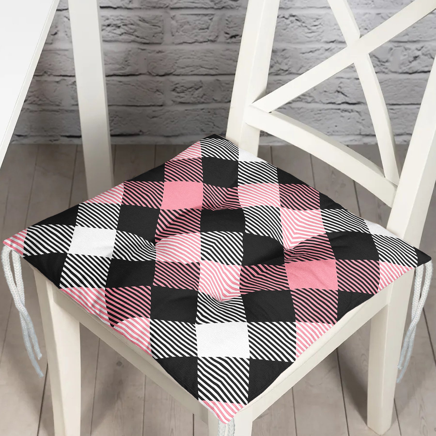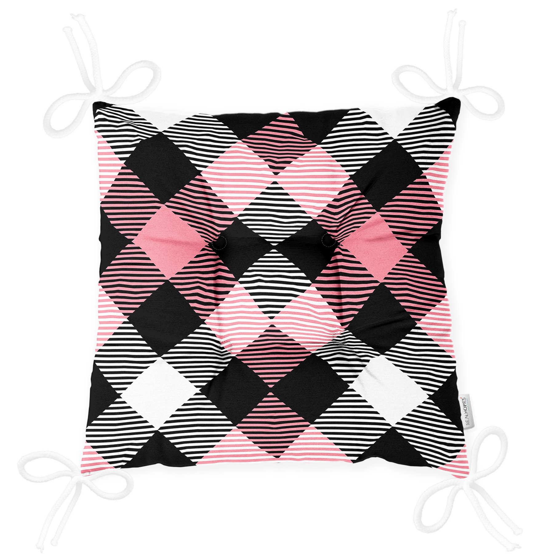 Renkli Pastel Zemin Üzerinde Siyah Ekose Desenli Dijital Baskılı Modern Pofidik Sandalye Minderi