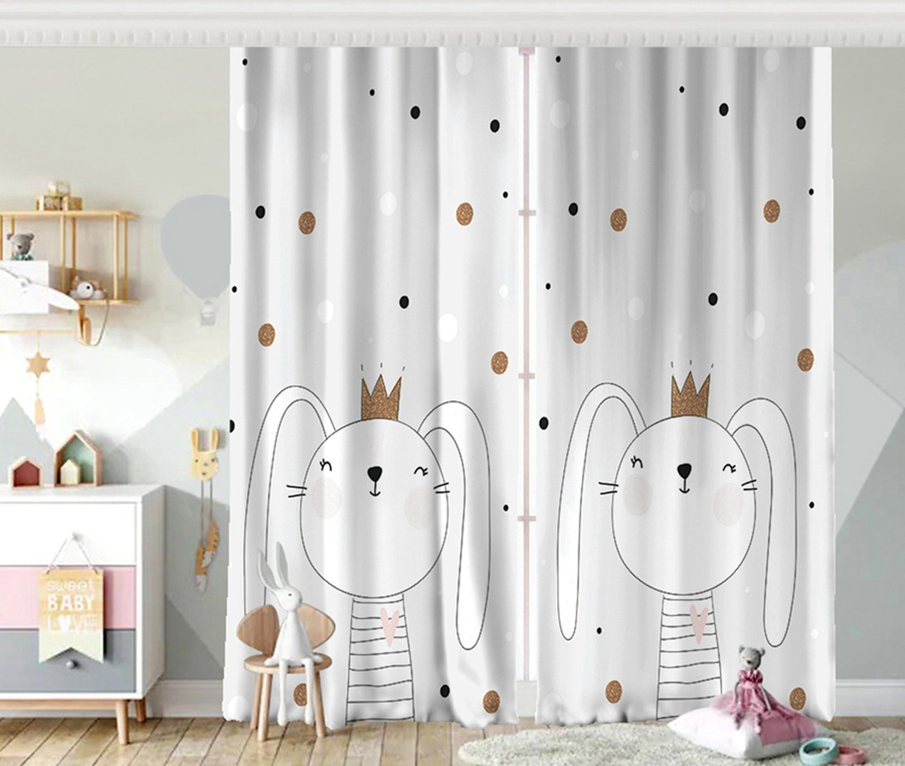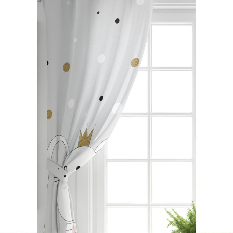 Renkli Puanlı Kedicik Desenli Bebek Odası Fon Perde