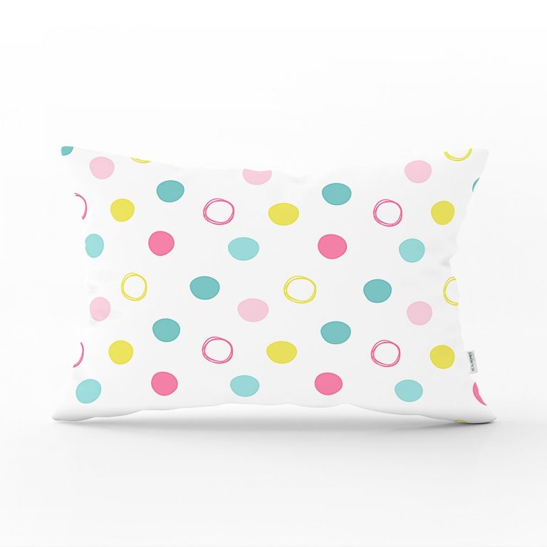 Renkli Puantiyeli Dijital Baskılı Dekoratif Dikdörtgen Kırlent Kılıfı