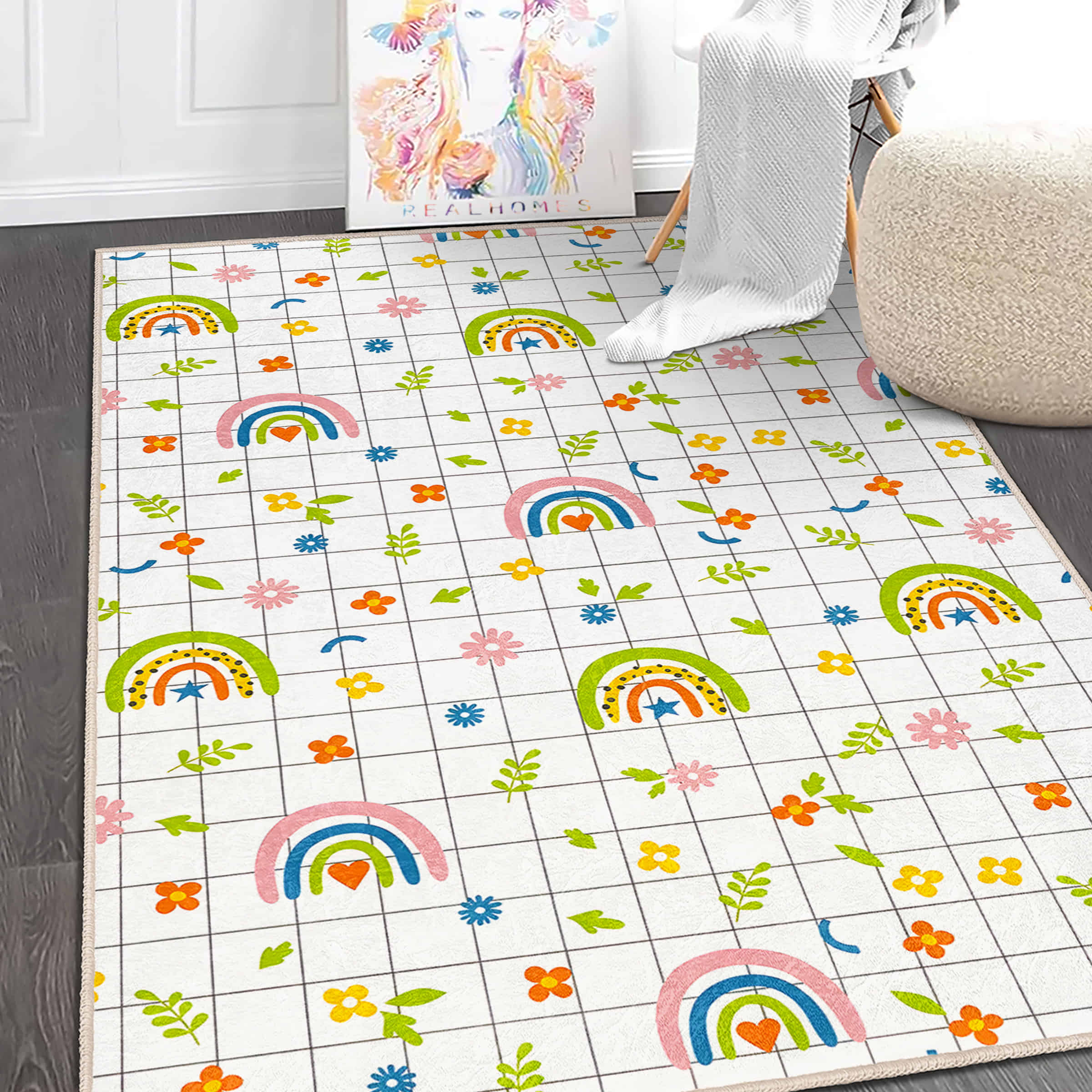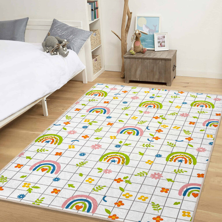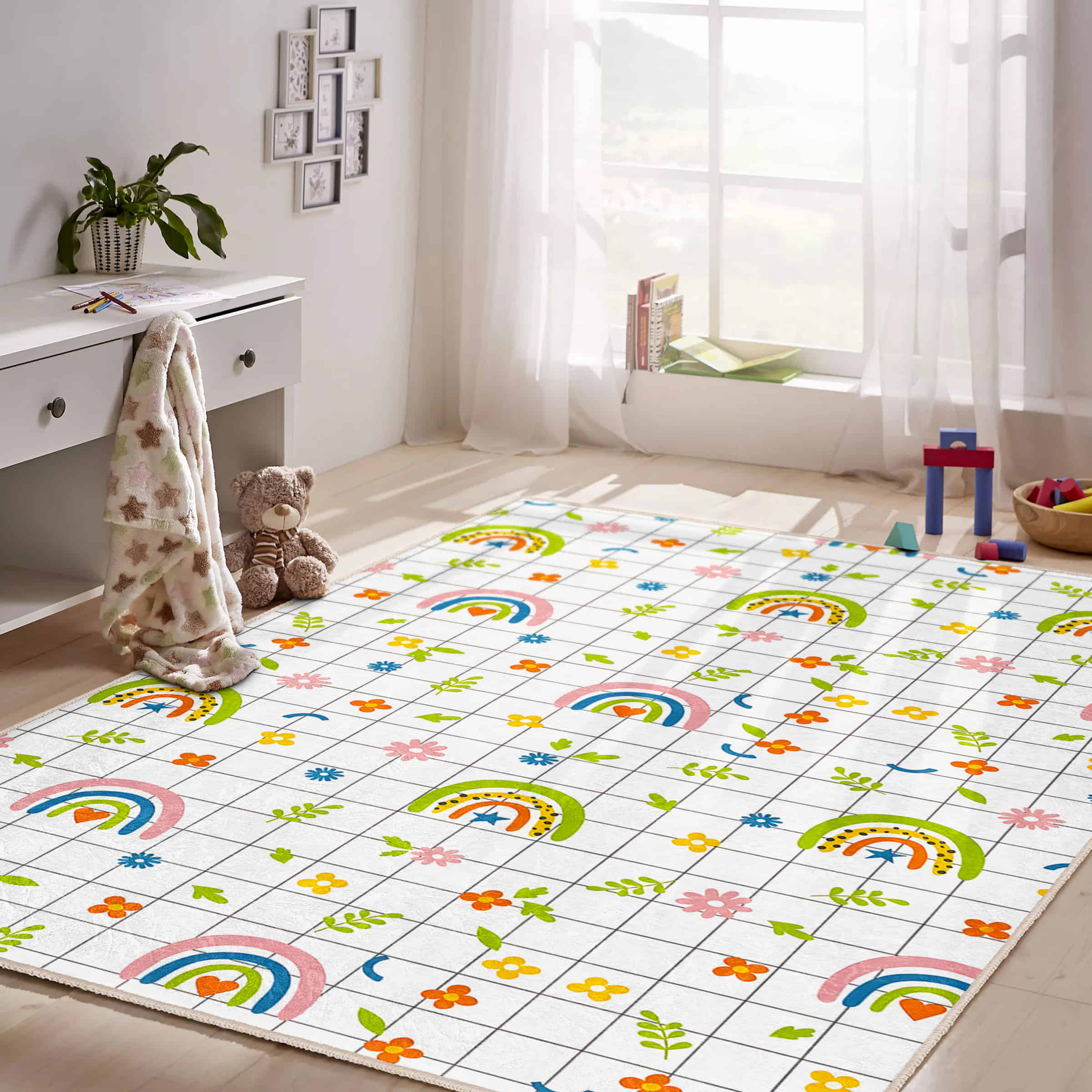 Renkli Rainbow Desenli Çocuk Halısı – Dikdörtgen Yıkanabilir Kaymaz Taban