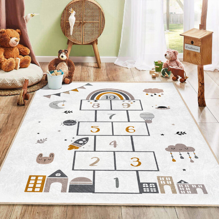 Renkli Rainbow Temalı Çocuk Halısı – Yıkanabilir Kaymaz Tabanlı Dikdörtgen Tasarım