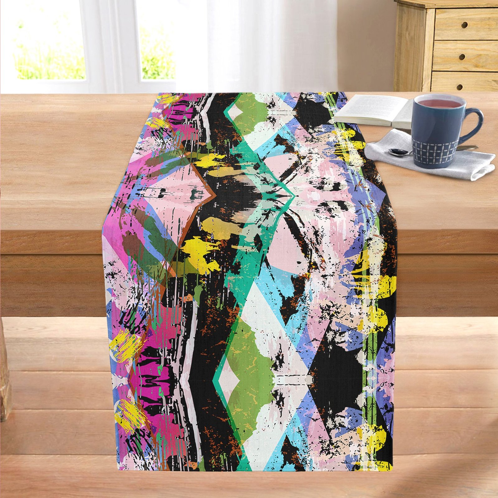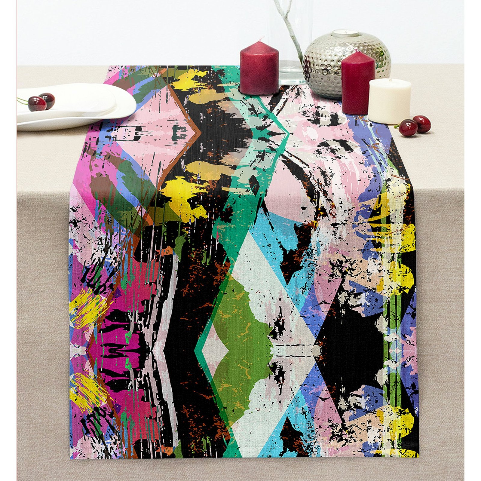 Renkli Sulu Boya Fırça Darbeli Motifli Modern Dikişli Şönil Runner