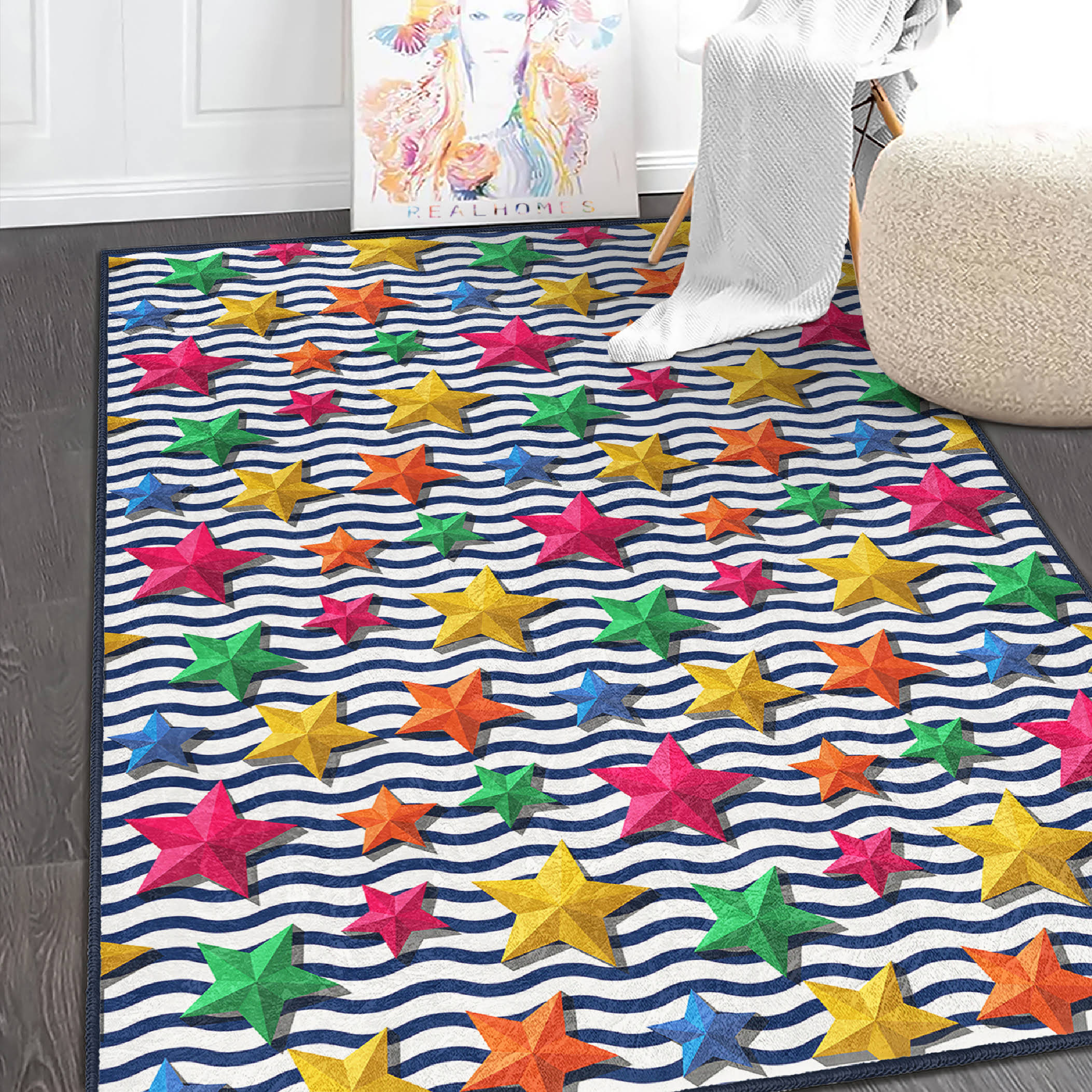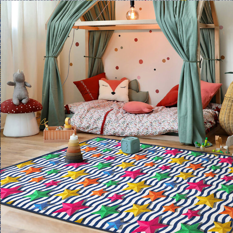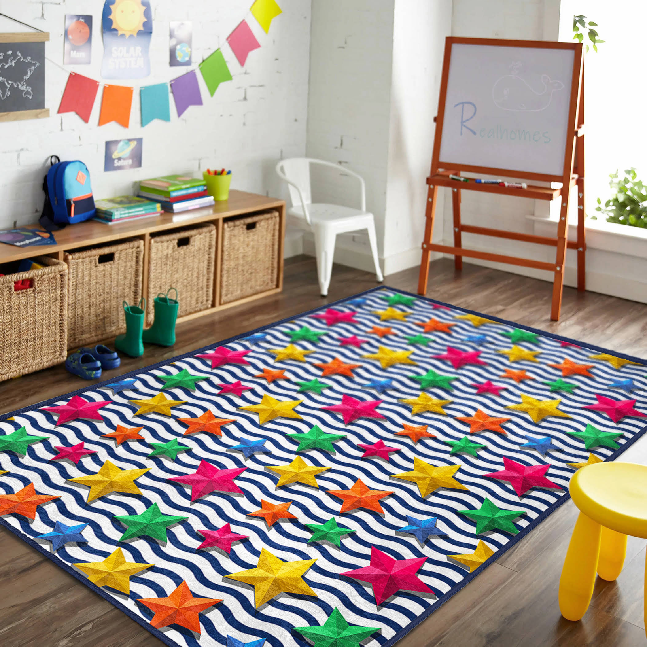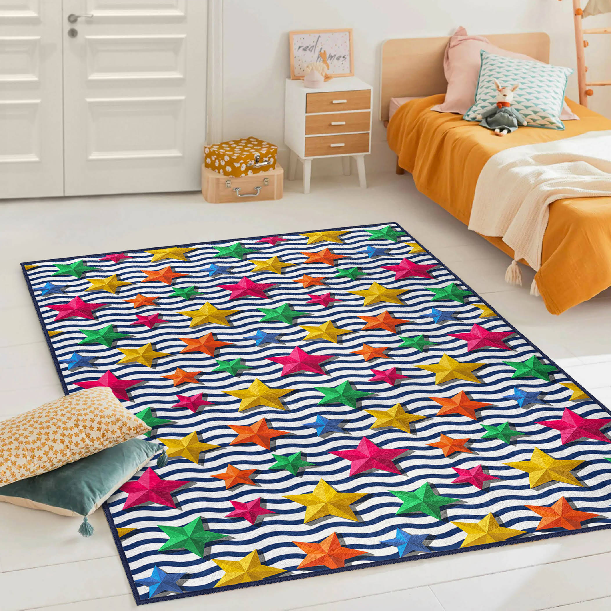 Renkli Yıldız Desenli Yıkanabilir Kaymaz Taban Çocuk Halısı – 35 Boyut Seçeneği ile