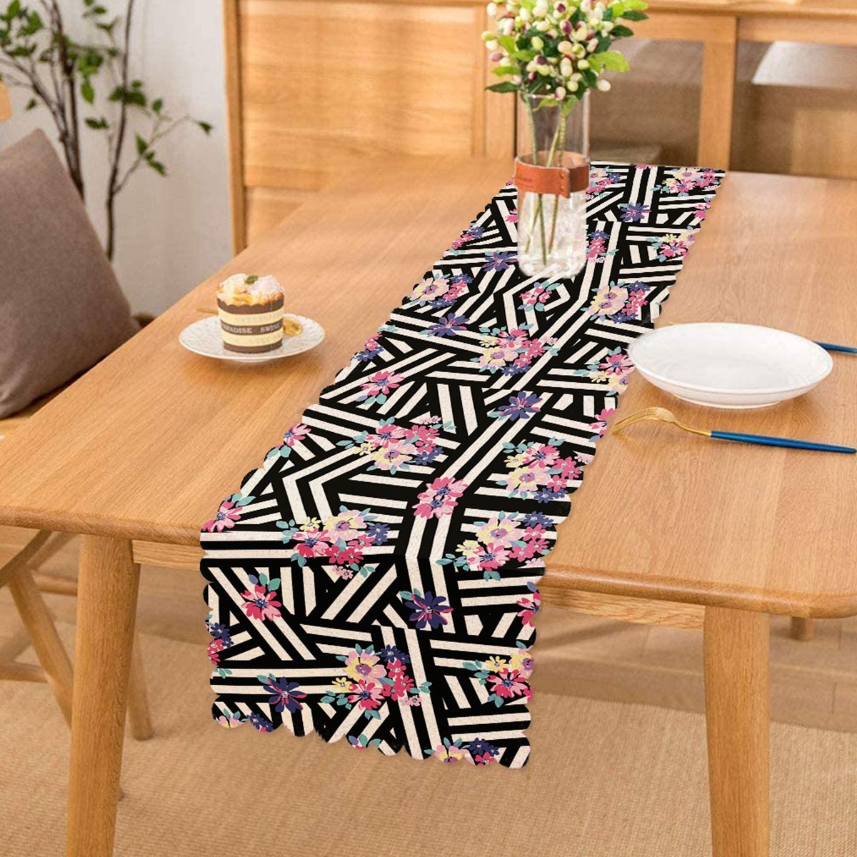 Renkli Zambak Desenli Modern Dijital Baskılı Runner