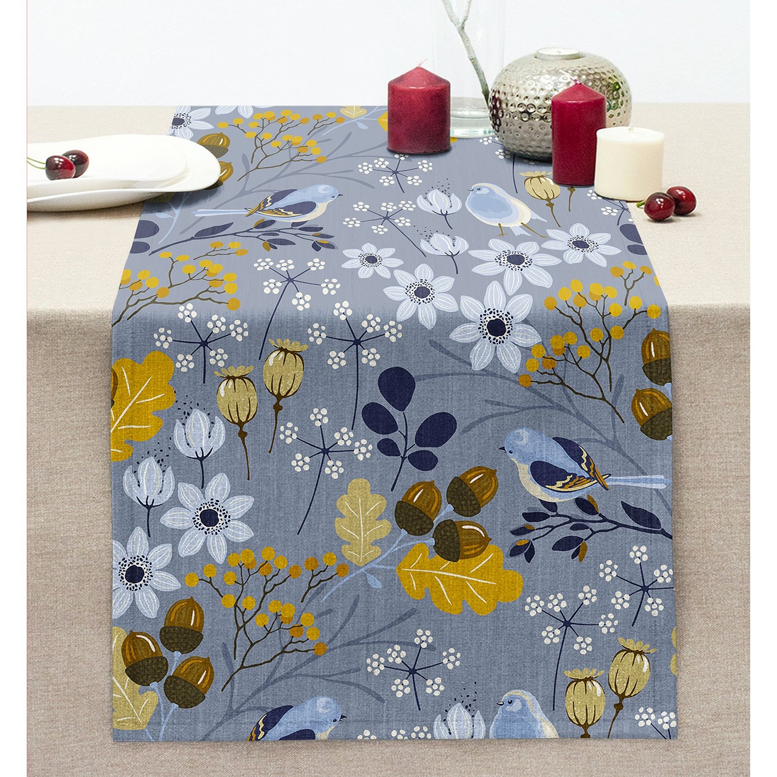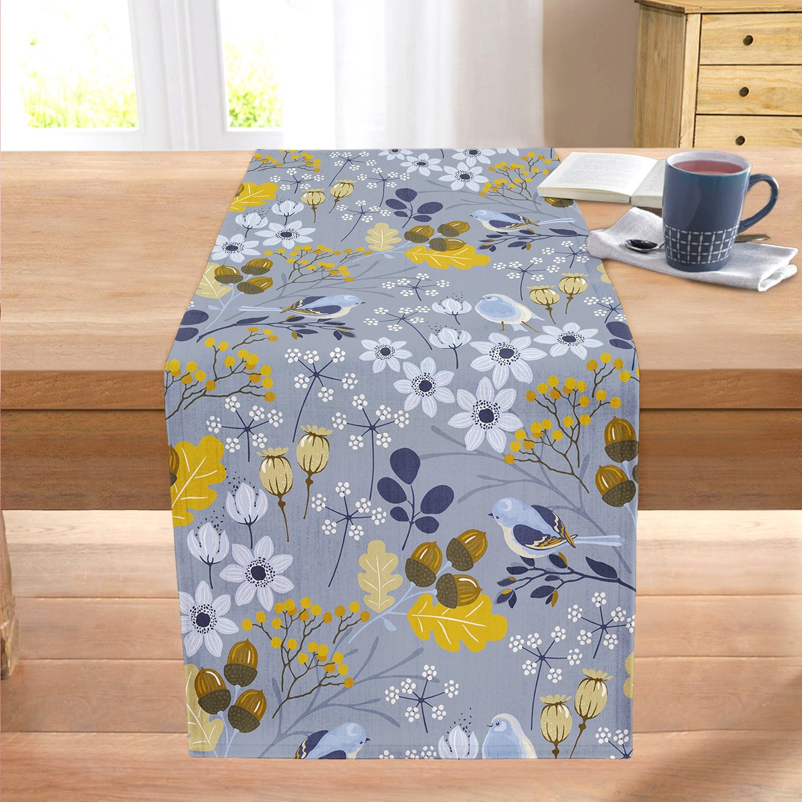 Renkli Zemin Üzerinde Çiçek Desenli Dijital Baskılı Modern Dikişli Şönil Runner