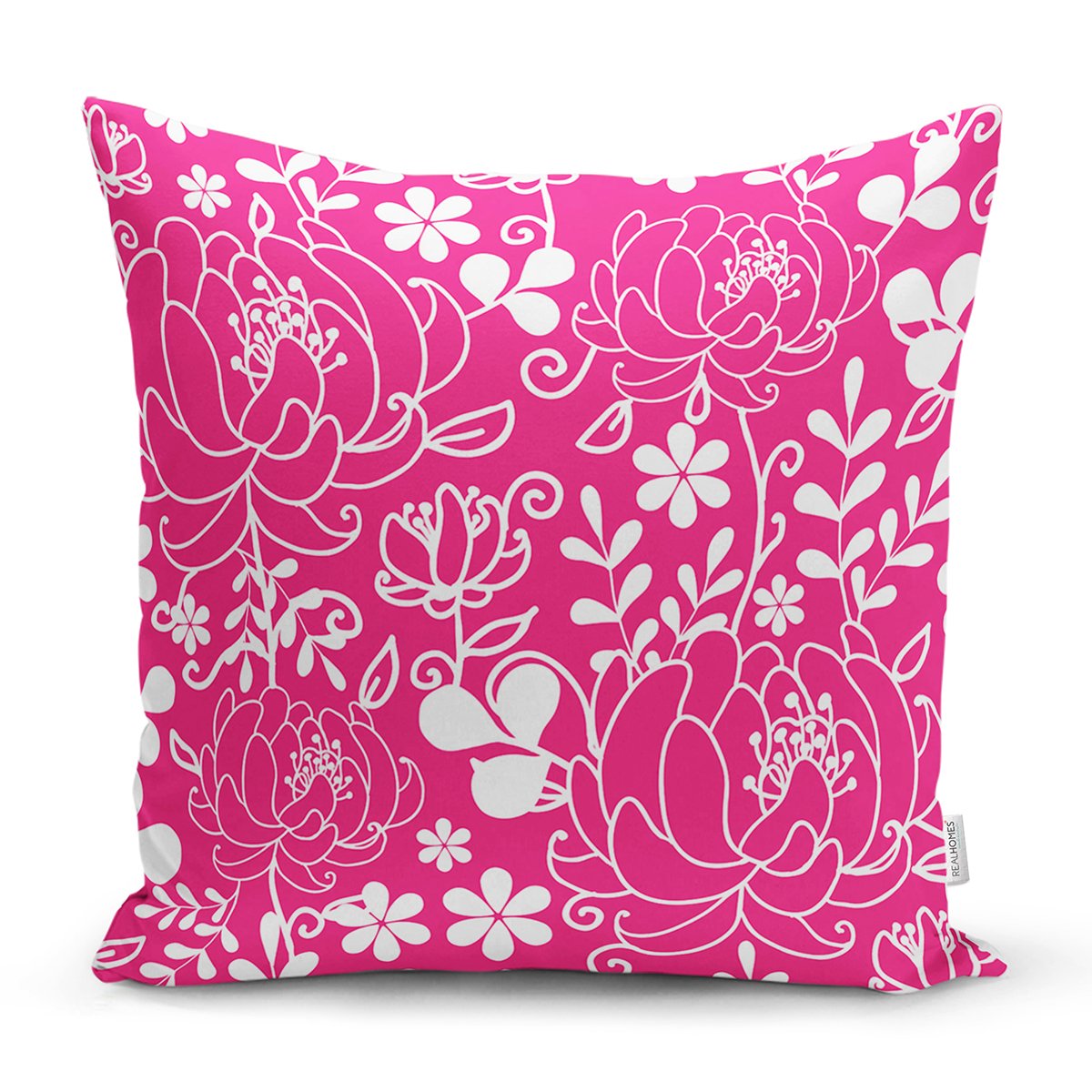 Renkli Zemin Üzerinde Çiçek Desenli Dijital Baskılı Modern Yastık Kırlent Kılıfı