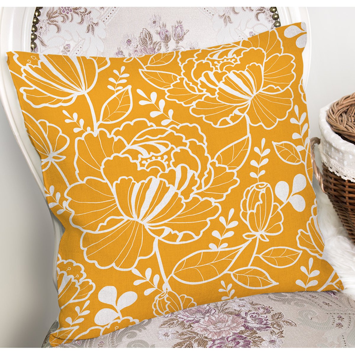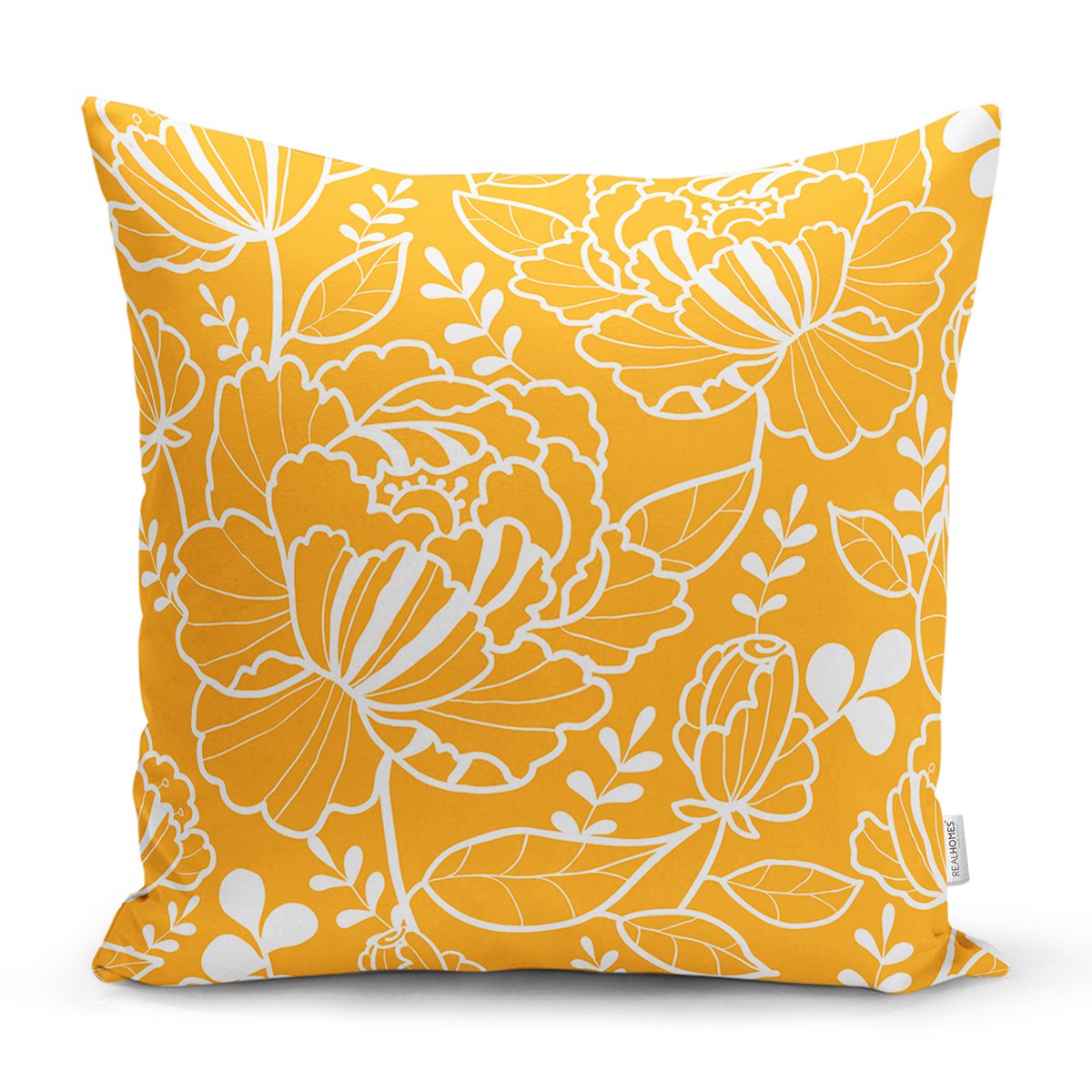Renkli Zemin Üzerinde Çiçek Desenli Dijital Baskılı Modern Yastık Kırlent Kılıfı