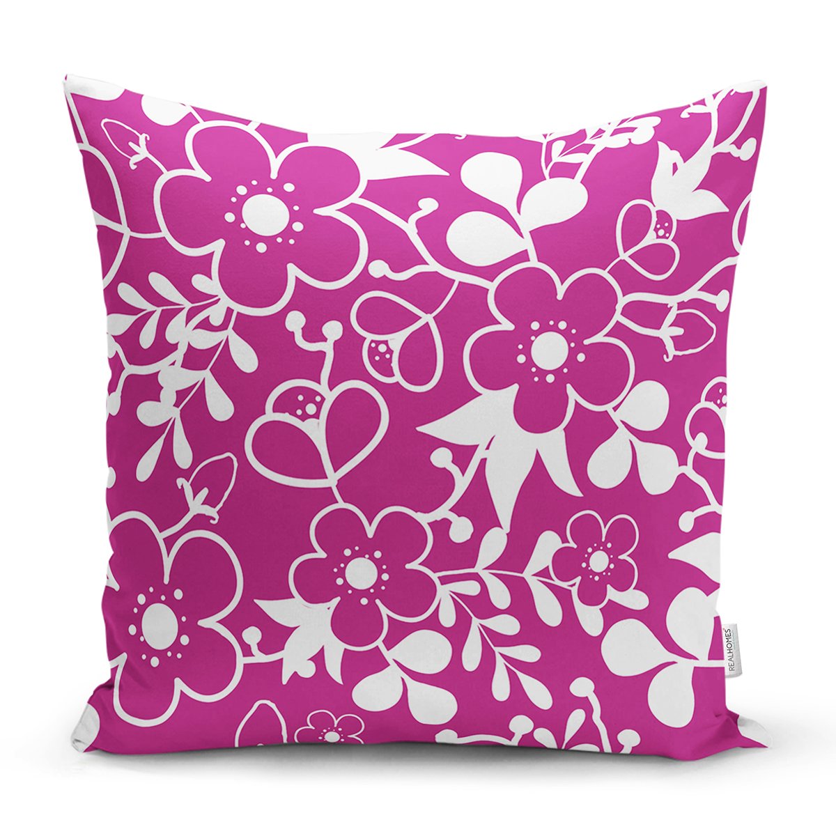 Renkli Zemin Üzerinde Çiçek Desenli Dijital Baskılı Modern Yastık Kırlent Kılıfı