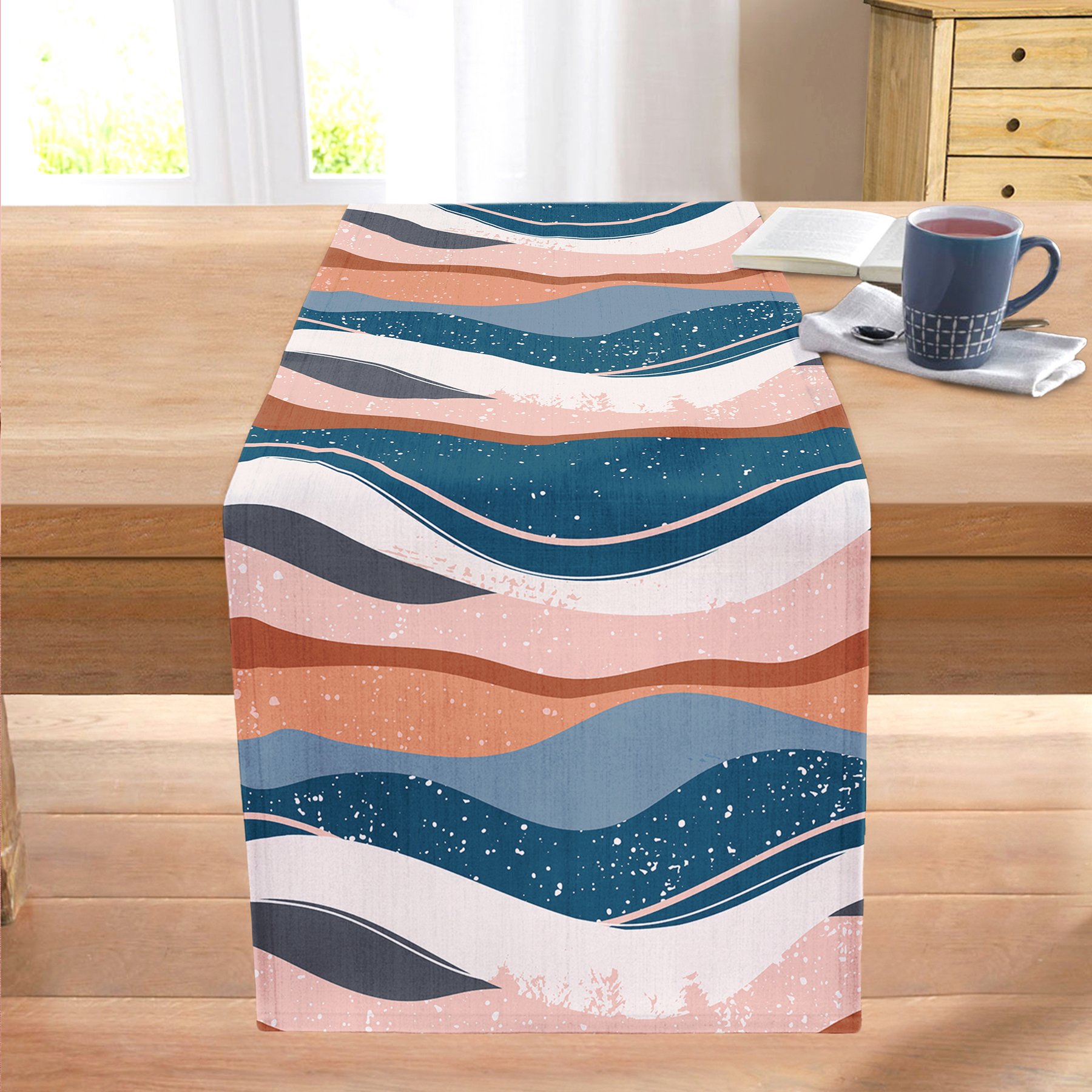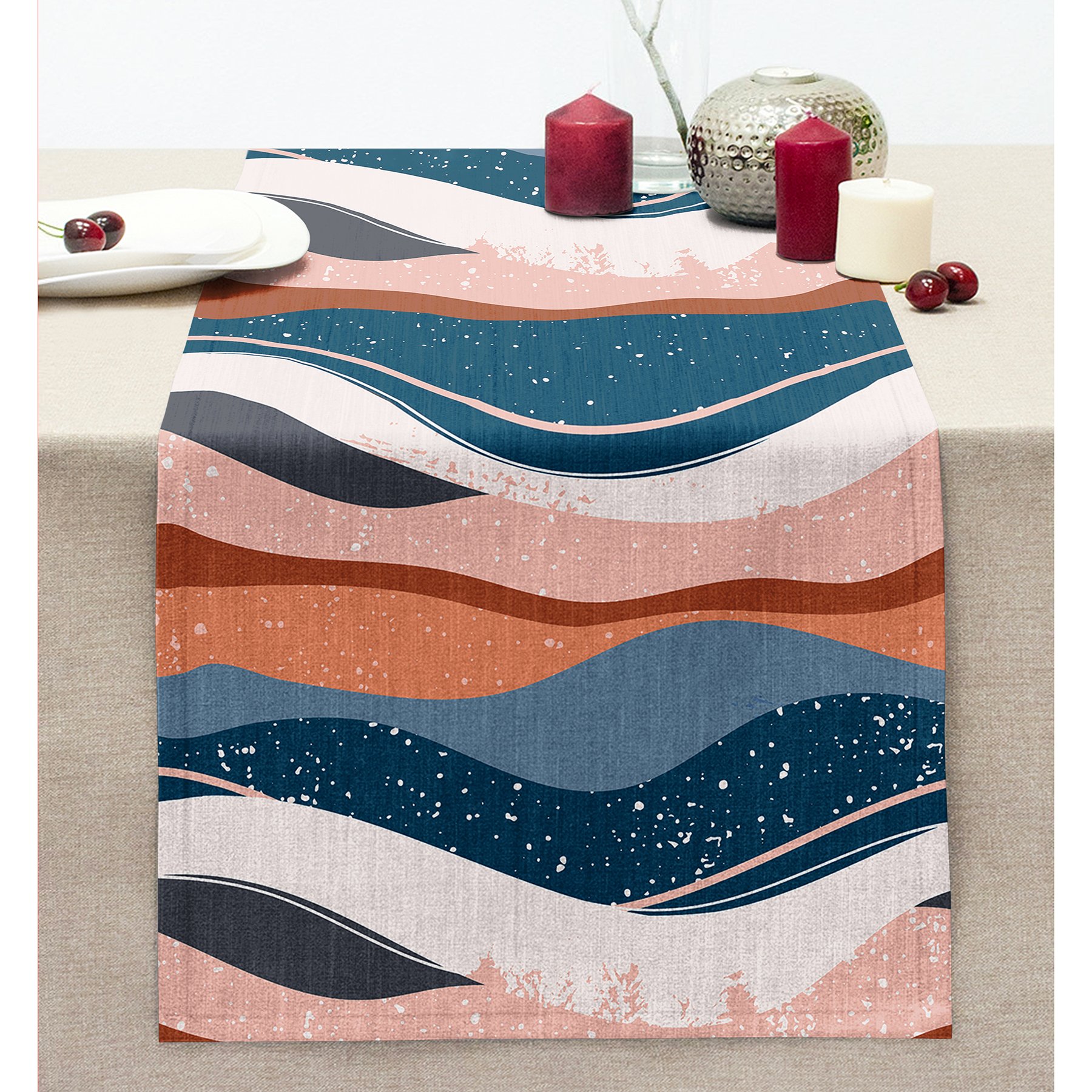 Renkli Zemin Üzerinde Geometrik Çizim Dijital Baskılı Modern Dikişli Şönil Runner