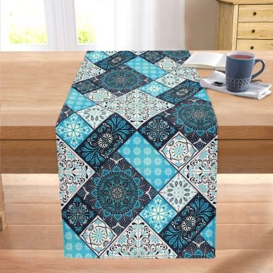 Renkli Zemin Üzerinde Geometrik Desenli Dijital Baskılı Modern Dikişli Şönil Runner