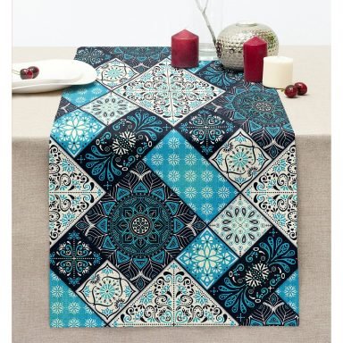Renkli Zemin Üzerinde Geometrik Desenli Dijital Baskılı Modern Dikişli Şönil Runner