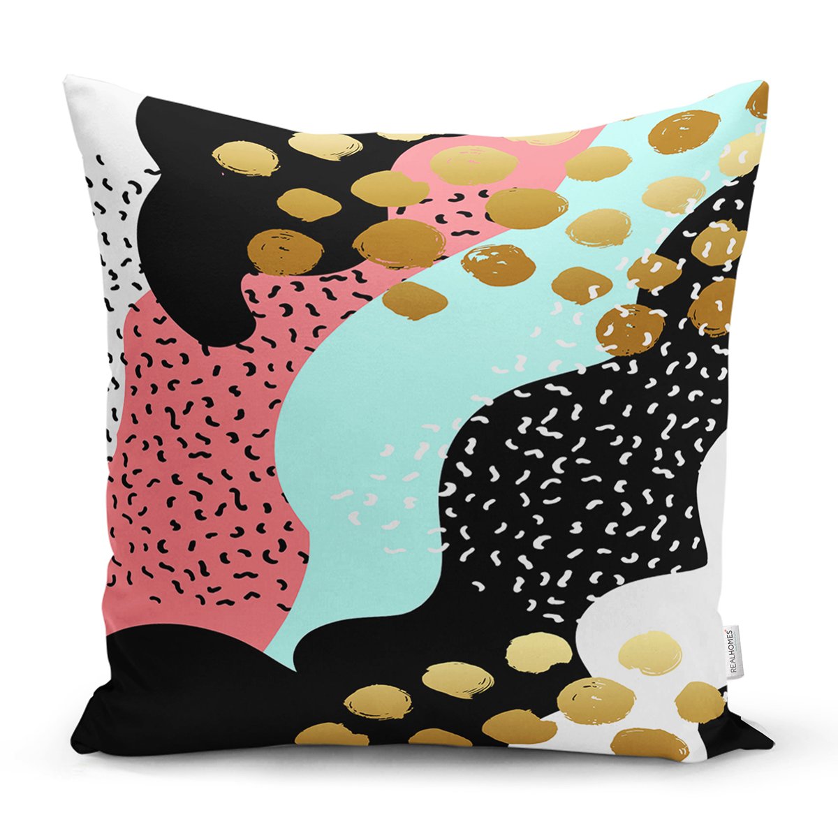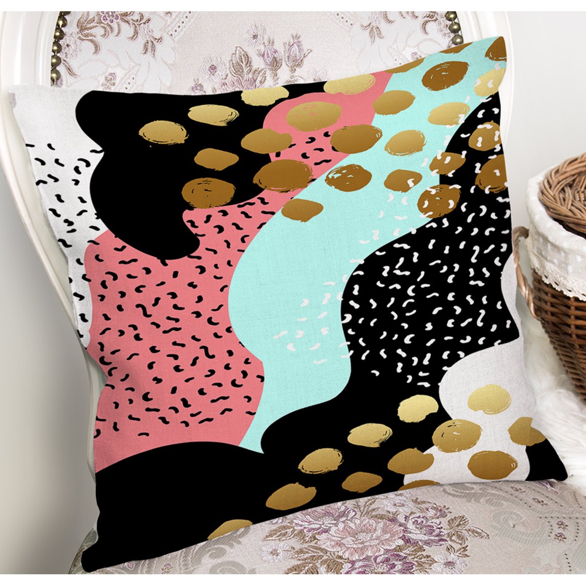 Renkli Zemin Üzerinde Gold Detaylı Modern Desenli Modern Yastık Kırlent Kılıfı