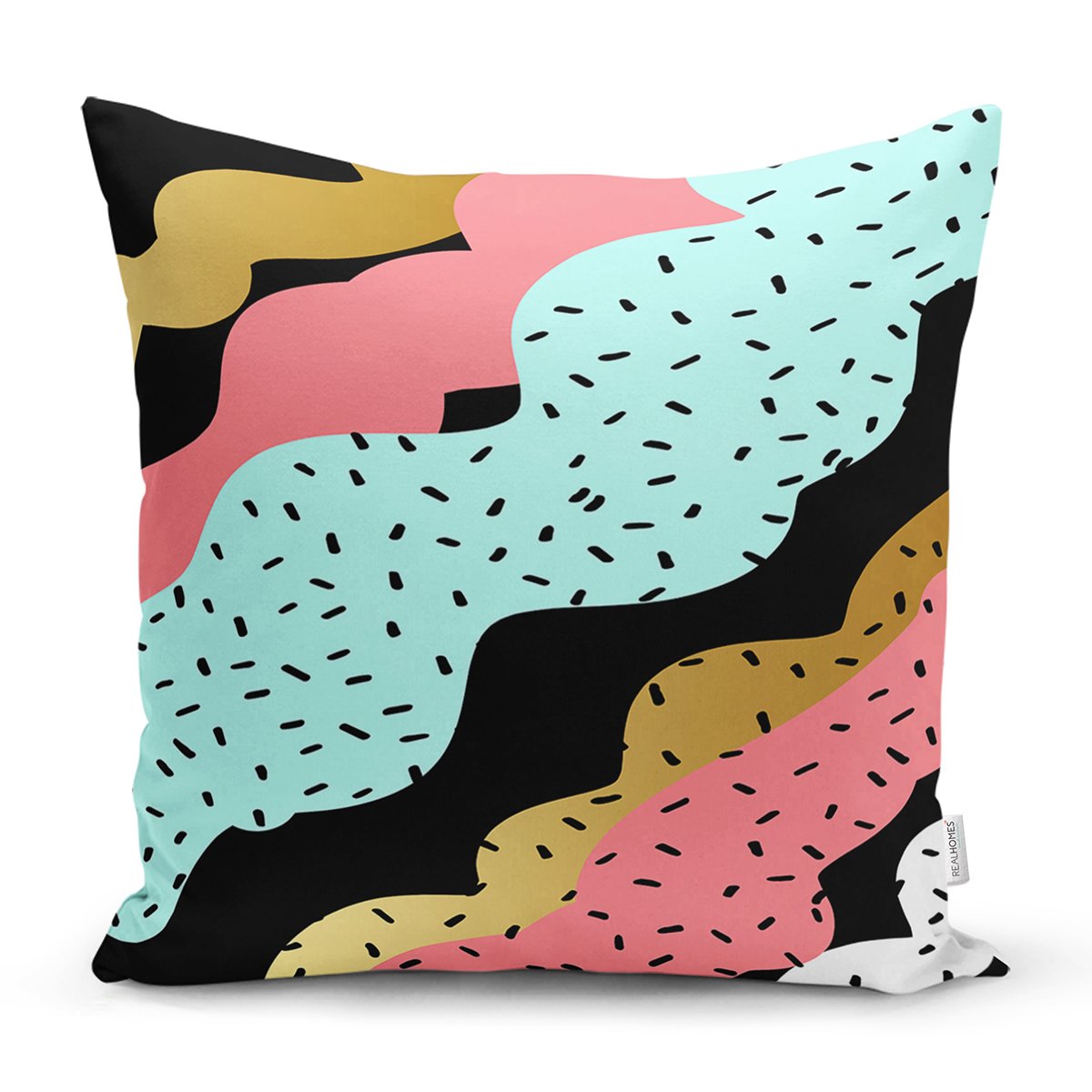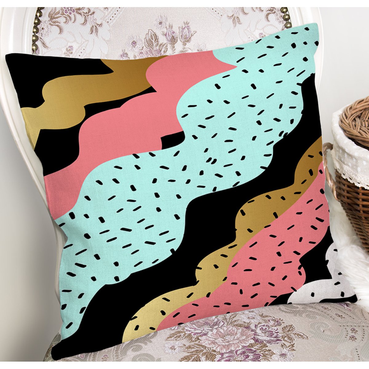 Renkli Zemin Üzerinde Gold Detaylı Modern Desenli Modern Yastık Kırlent Kılıfı
