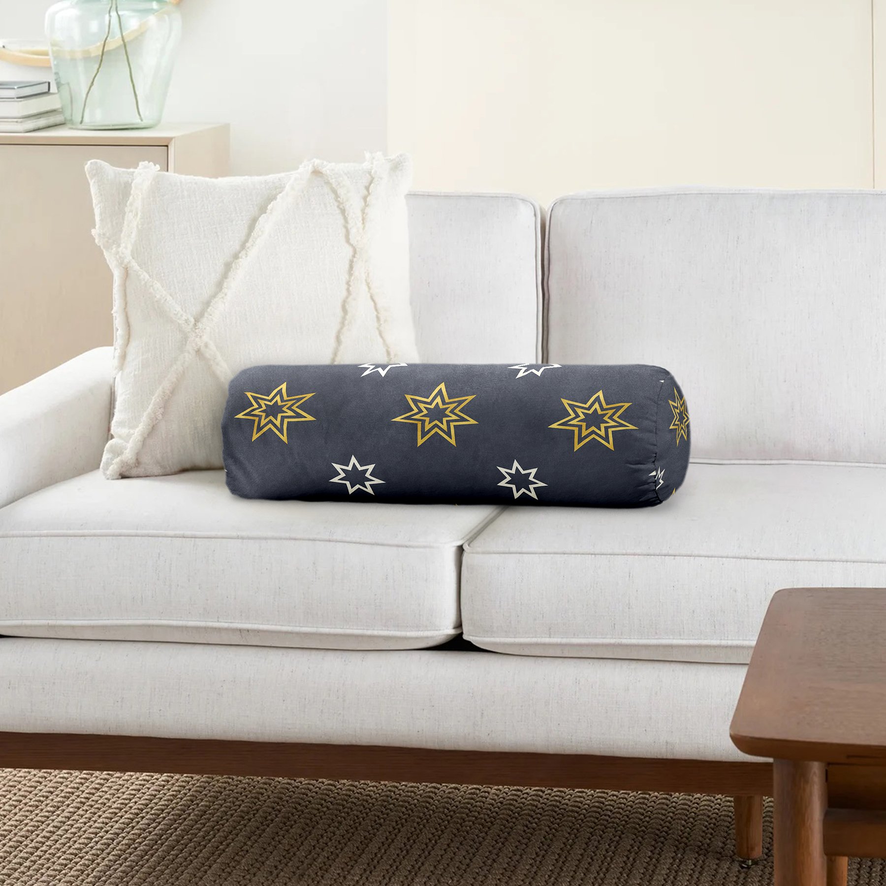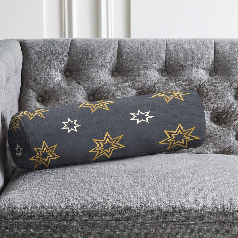 Renkli Zemin Üzerinde Gold Detaylı Yıldız Desenli Dijital Baskılı Modern İç Dolgulu Fermuarlı Çok Amaçlı Silindir Yastık Kırlent