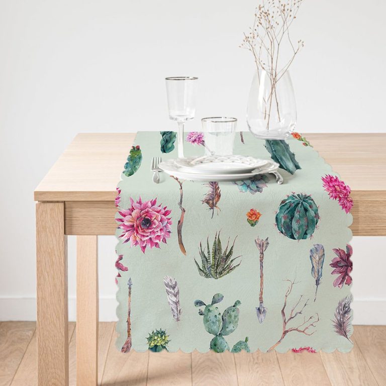 Renkli Zemin Üzerinde Kaktüs Desenli Dijital Baskılı Modern Runner