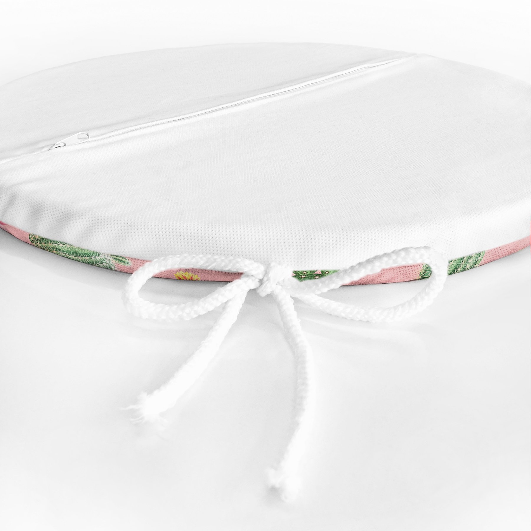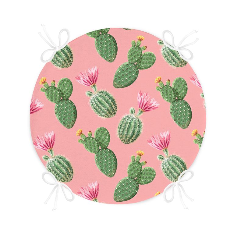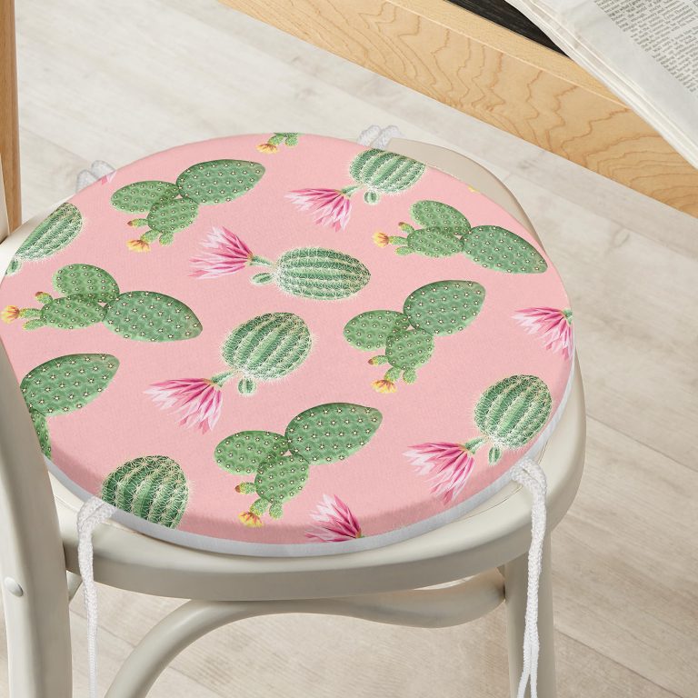 Renkli Zemin Üzerinde Kaktüs Desenli Dijital Baskılı Modern Yuvarlak Fermuarlı Sandalye Minderi
