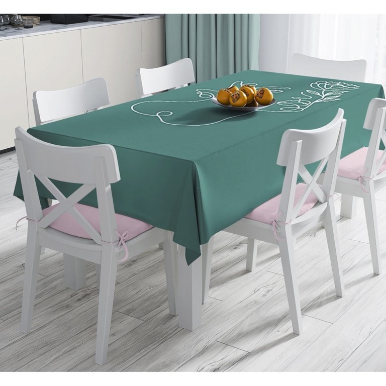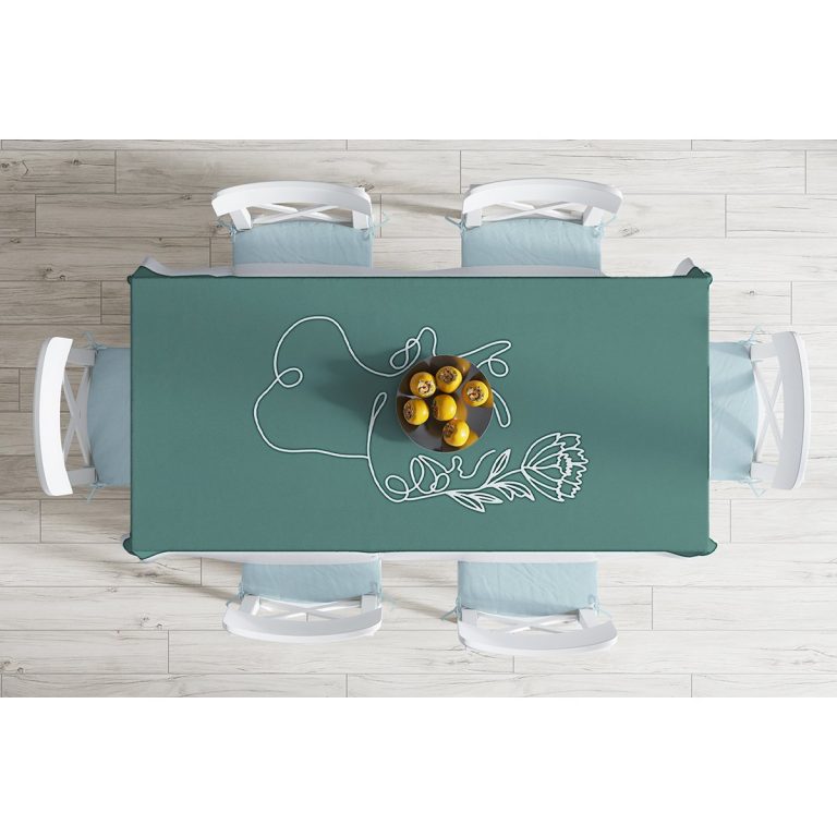Renkli Zemin Üzerinde Onedraw Çizimli Bayan Silüeti Dijital Baskılı Masa Örtüsü