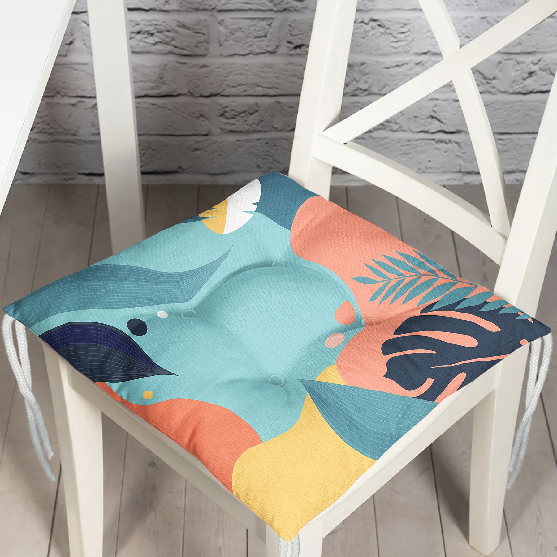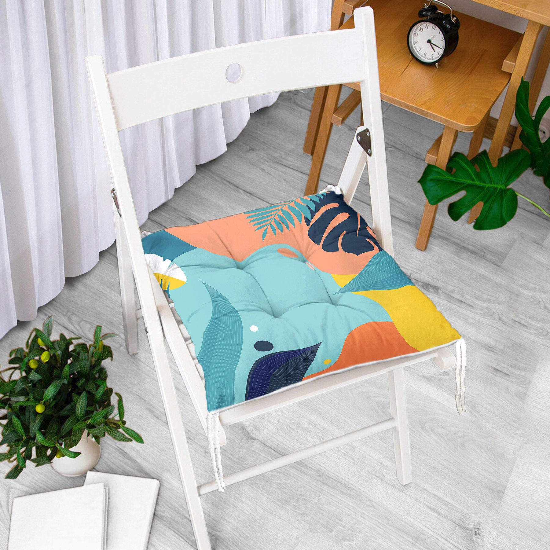 Renkli Zemin Üzerinde Pastel Yaprak Desenli Dijital Baskılı Modern Pofidik Sandalye Minderi
