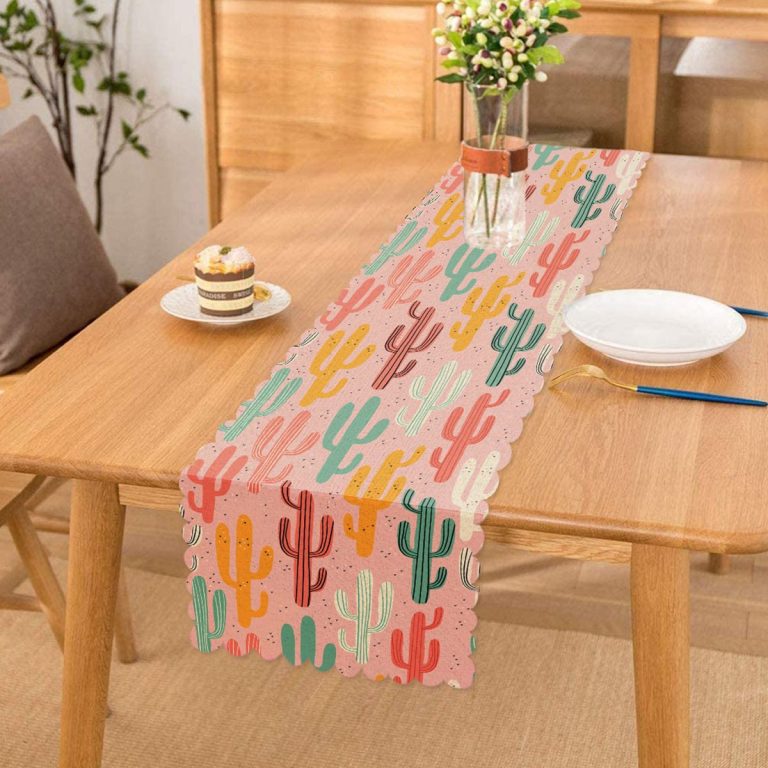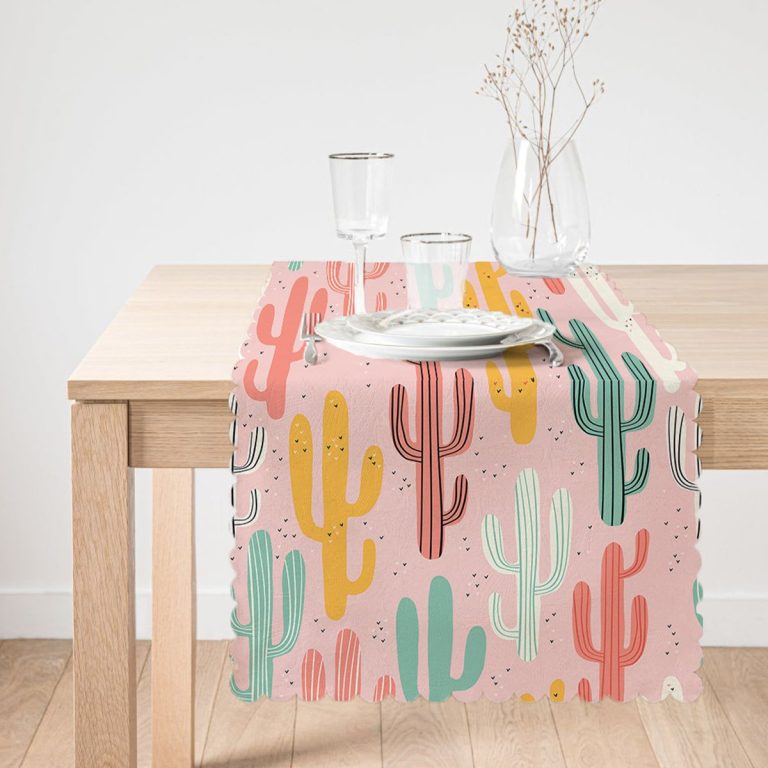 Renkli Zemin Üzerinde Sevimli Kaktüs Desenli Dijital Baskılı Modern Runner