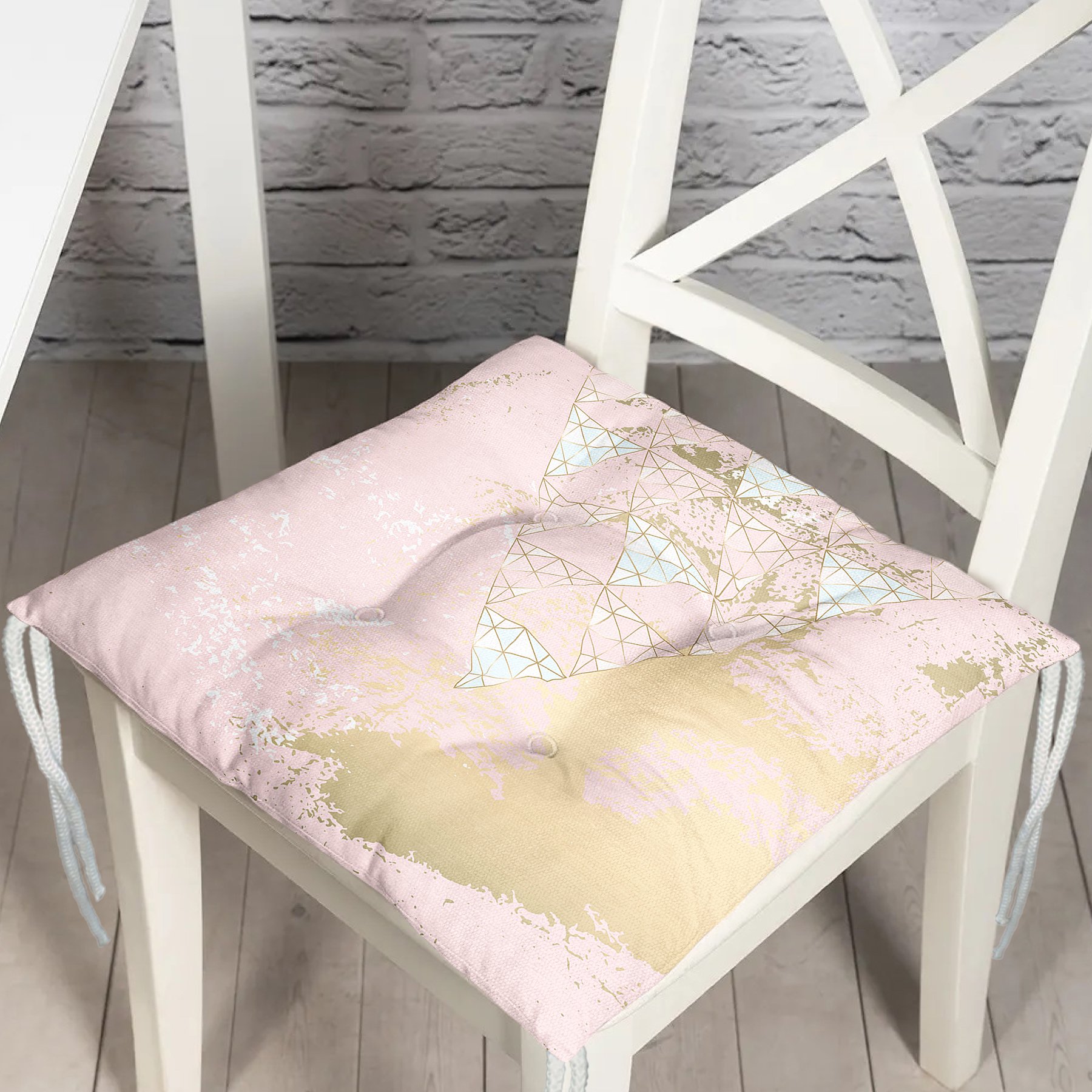 Renkli Zemin Üzerinde Üçgen Desenli Dijital Baskılı Modern Pofidik Sandalye Minderi